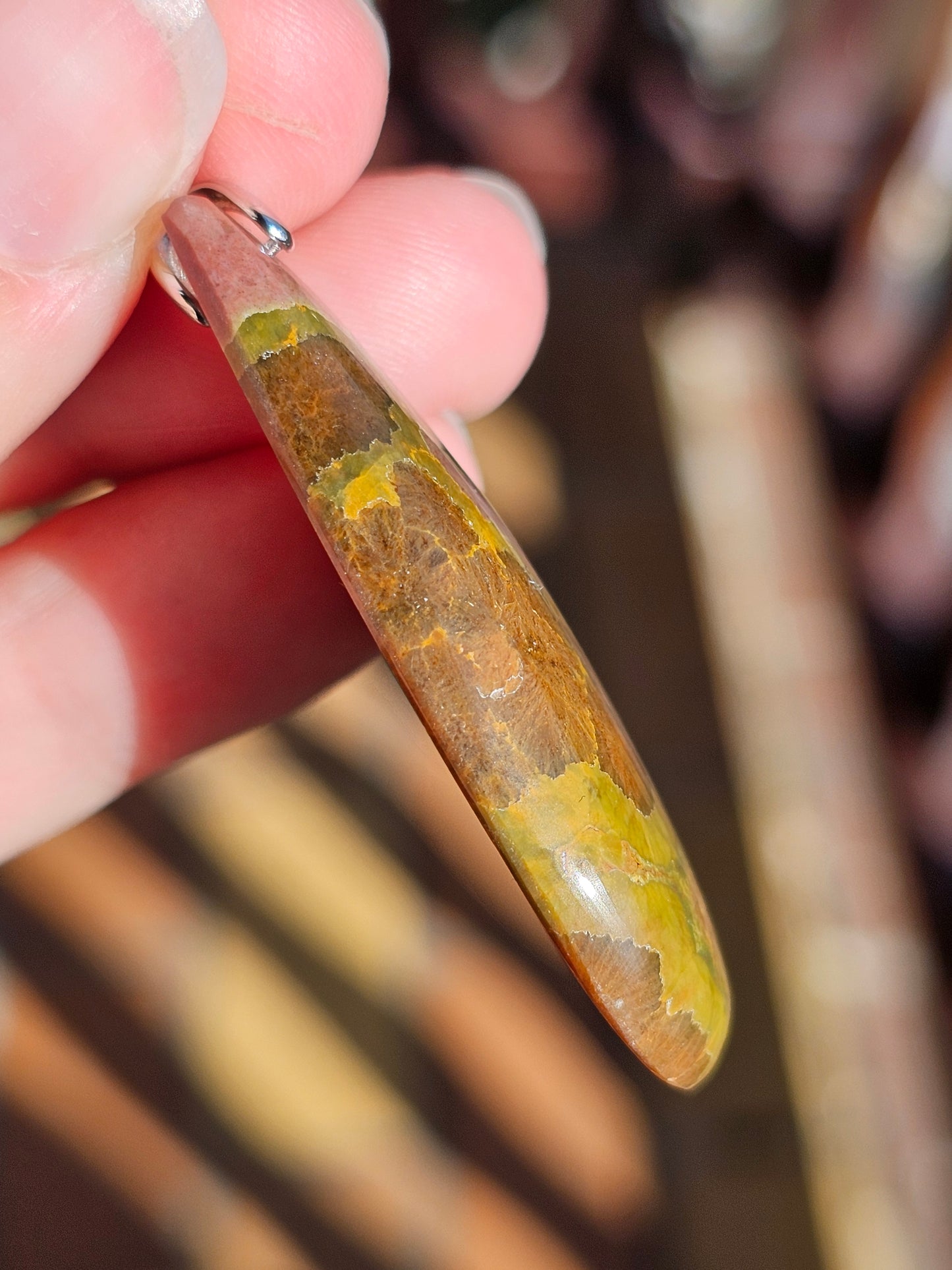 Magnifique pendentif en Jaspe orbiculaire aux motifs originaux, monté sur une bélière en argent 925. Un vrai tableau !