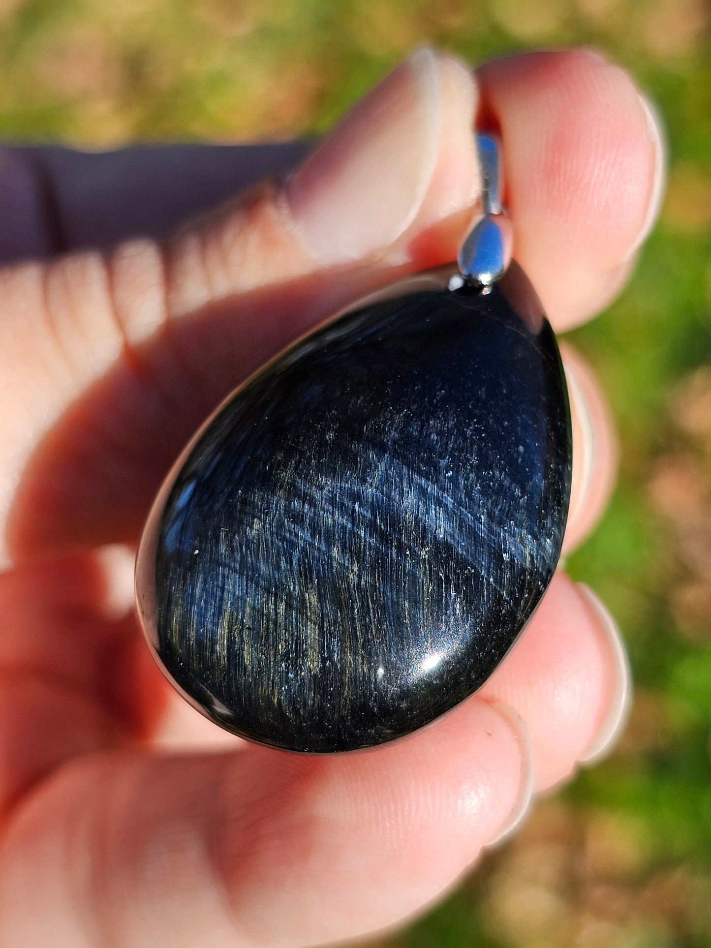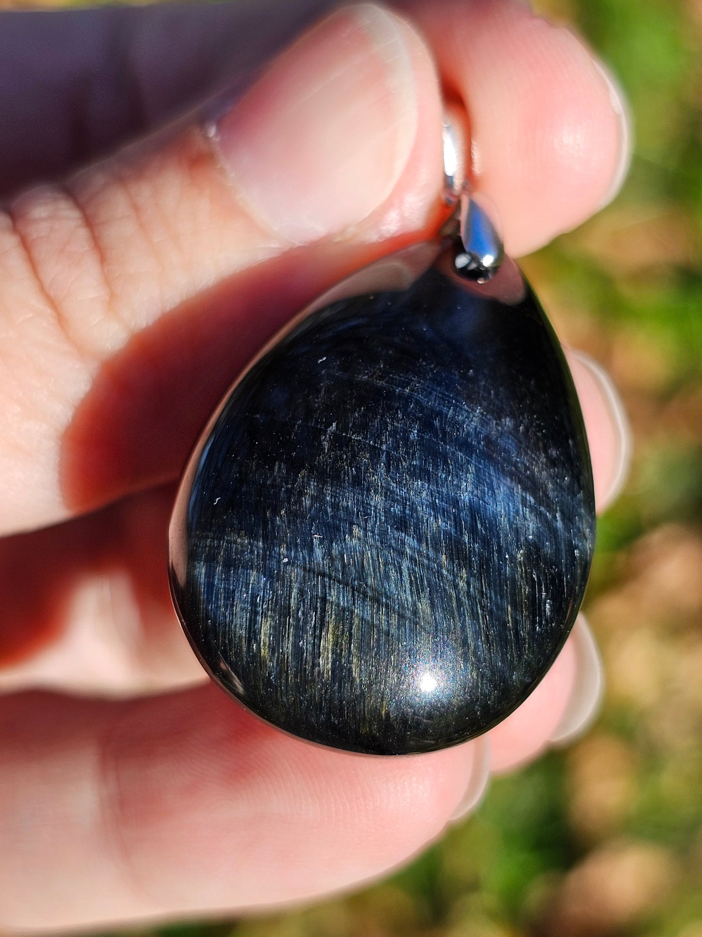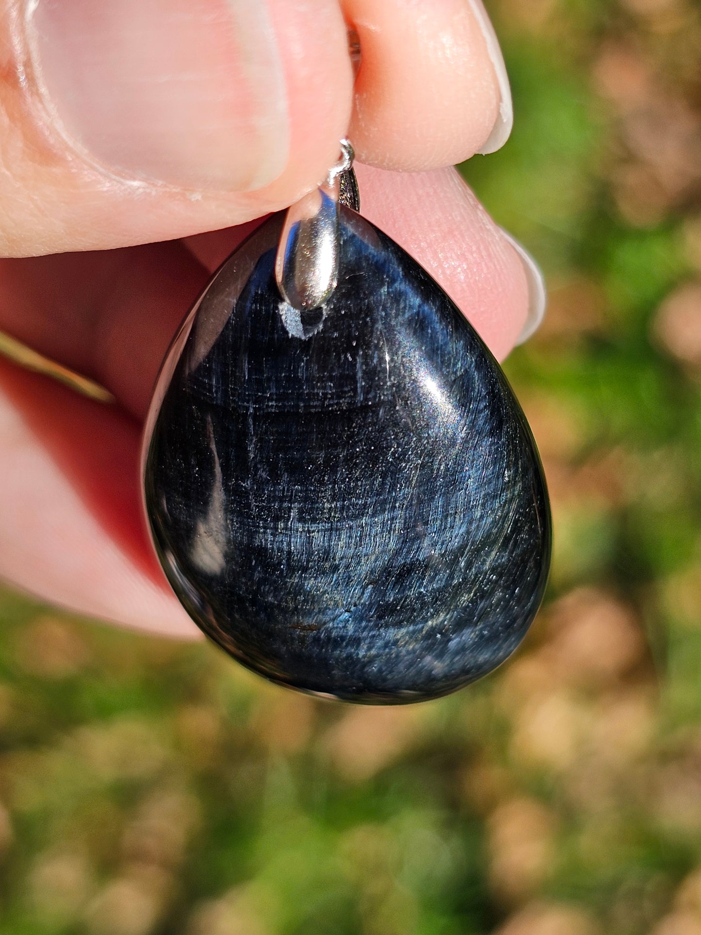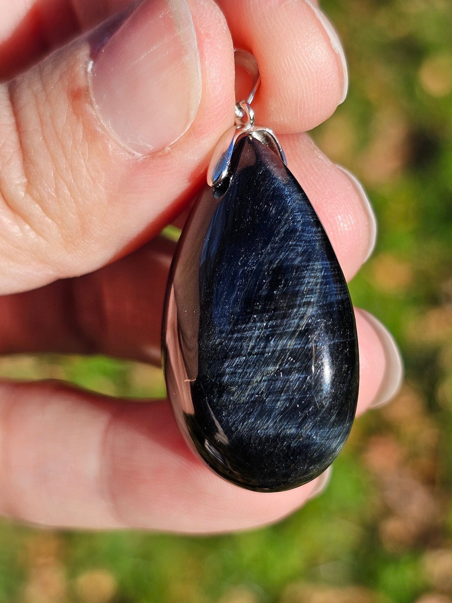Sublime pendentif en Oeil de faucon monté sur une bélière en argent 925.