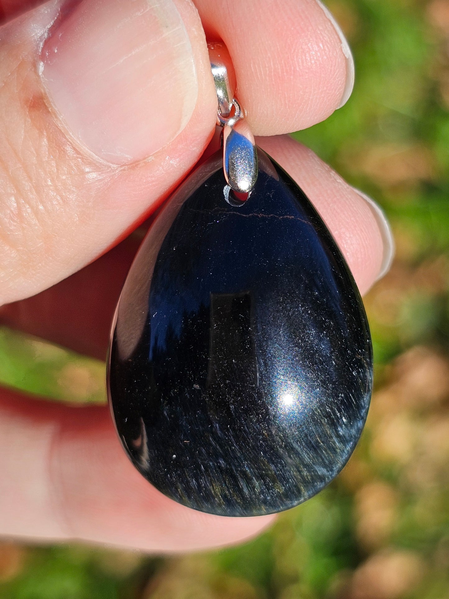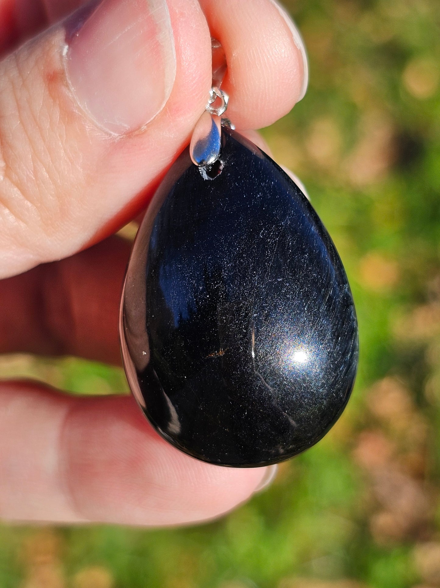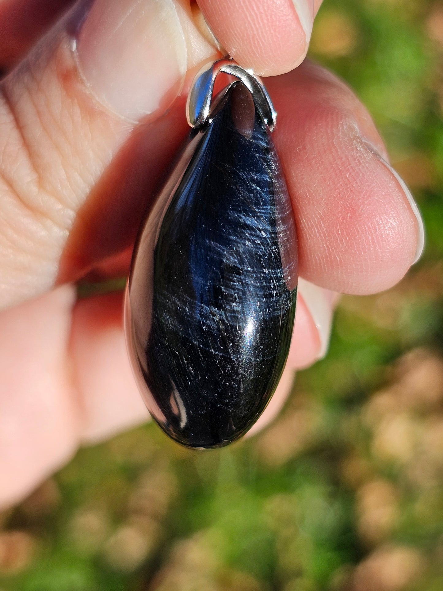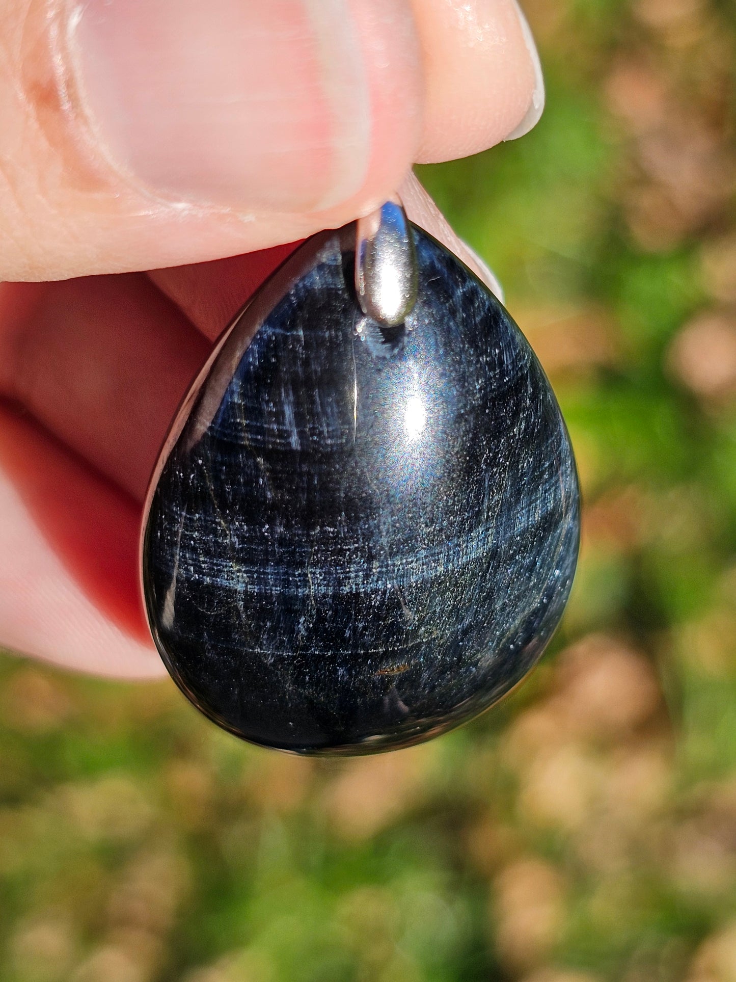 Sublime pendentif en Oeil de faucon monté sur une bélière en argent 925.