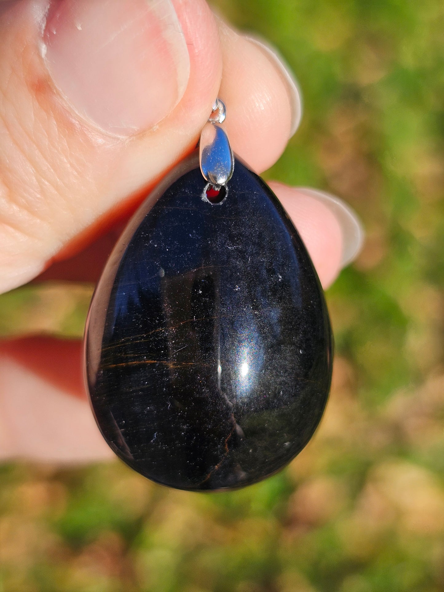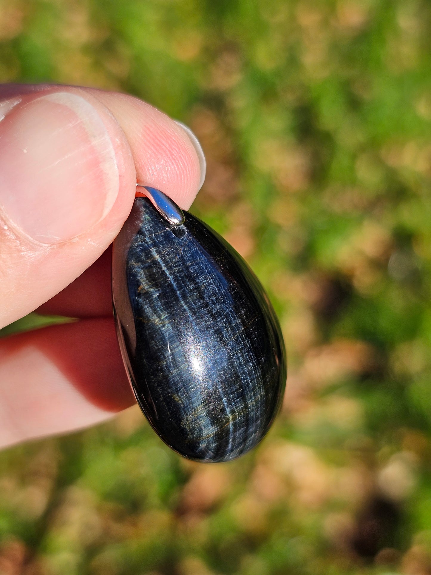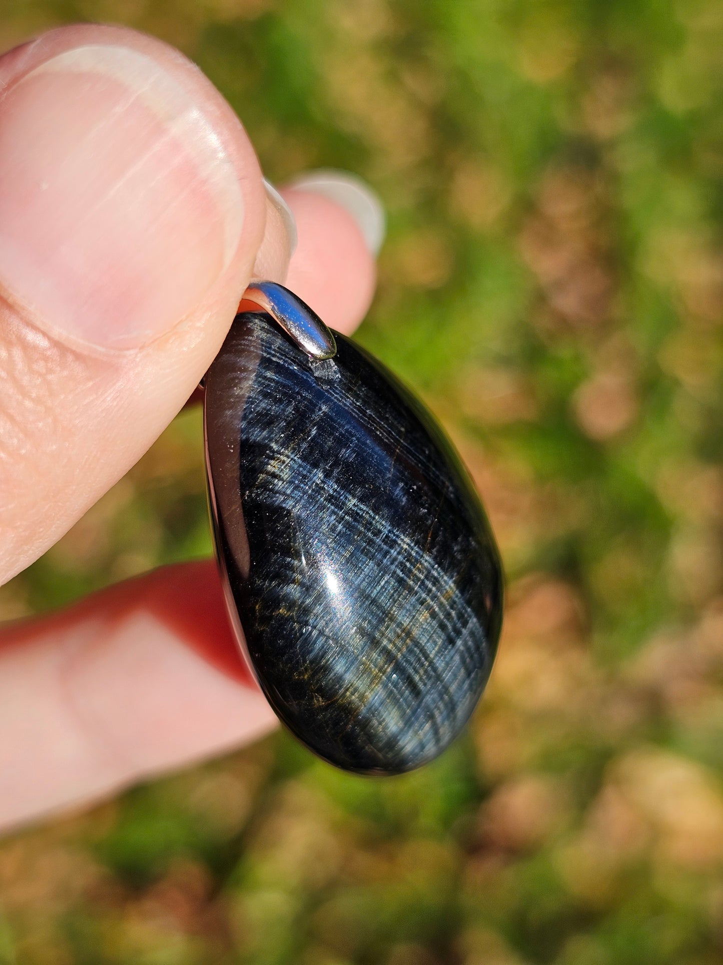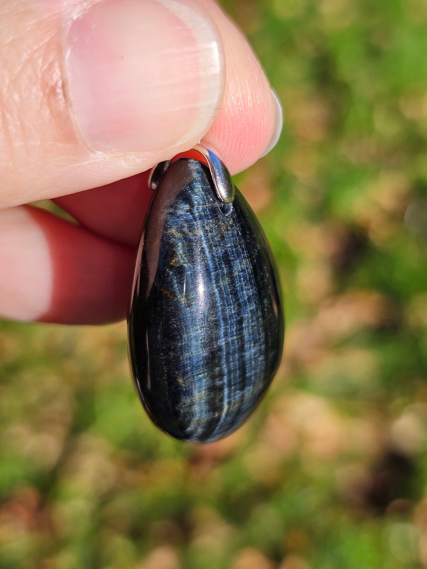 Sublime pendentif en Oeil de faucon monté sur une bélière en argent 925.