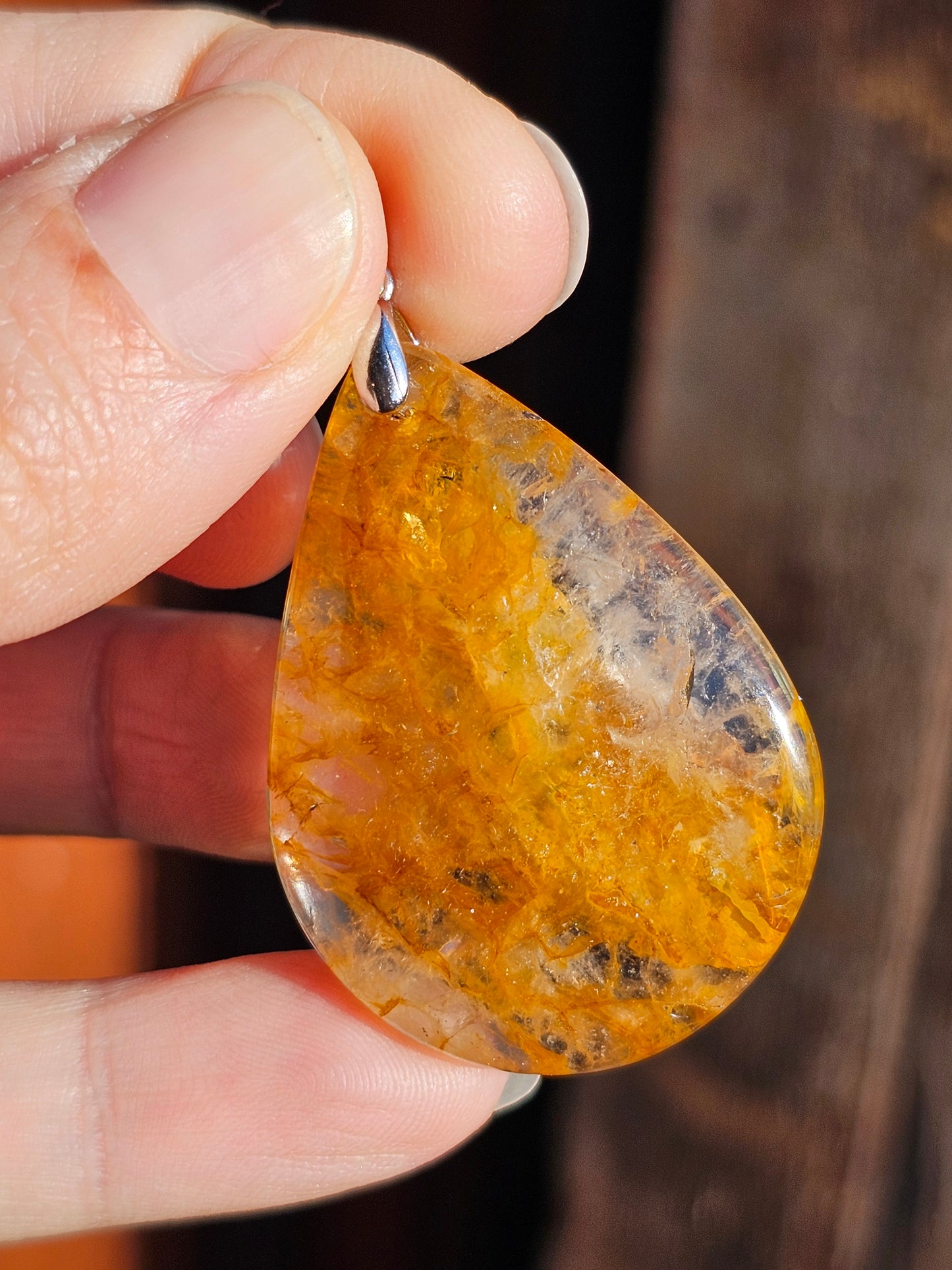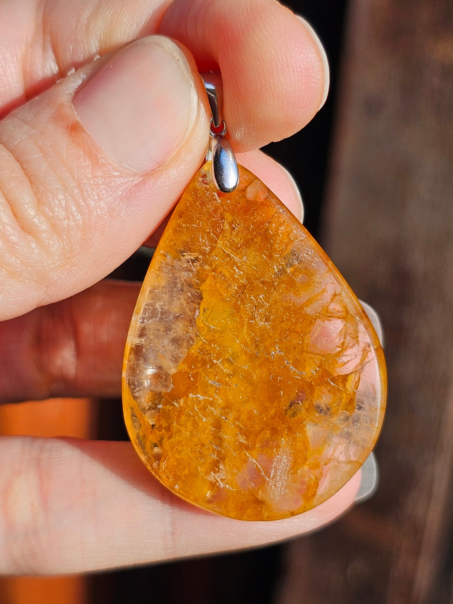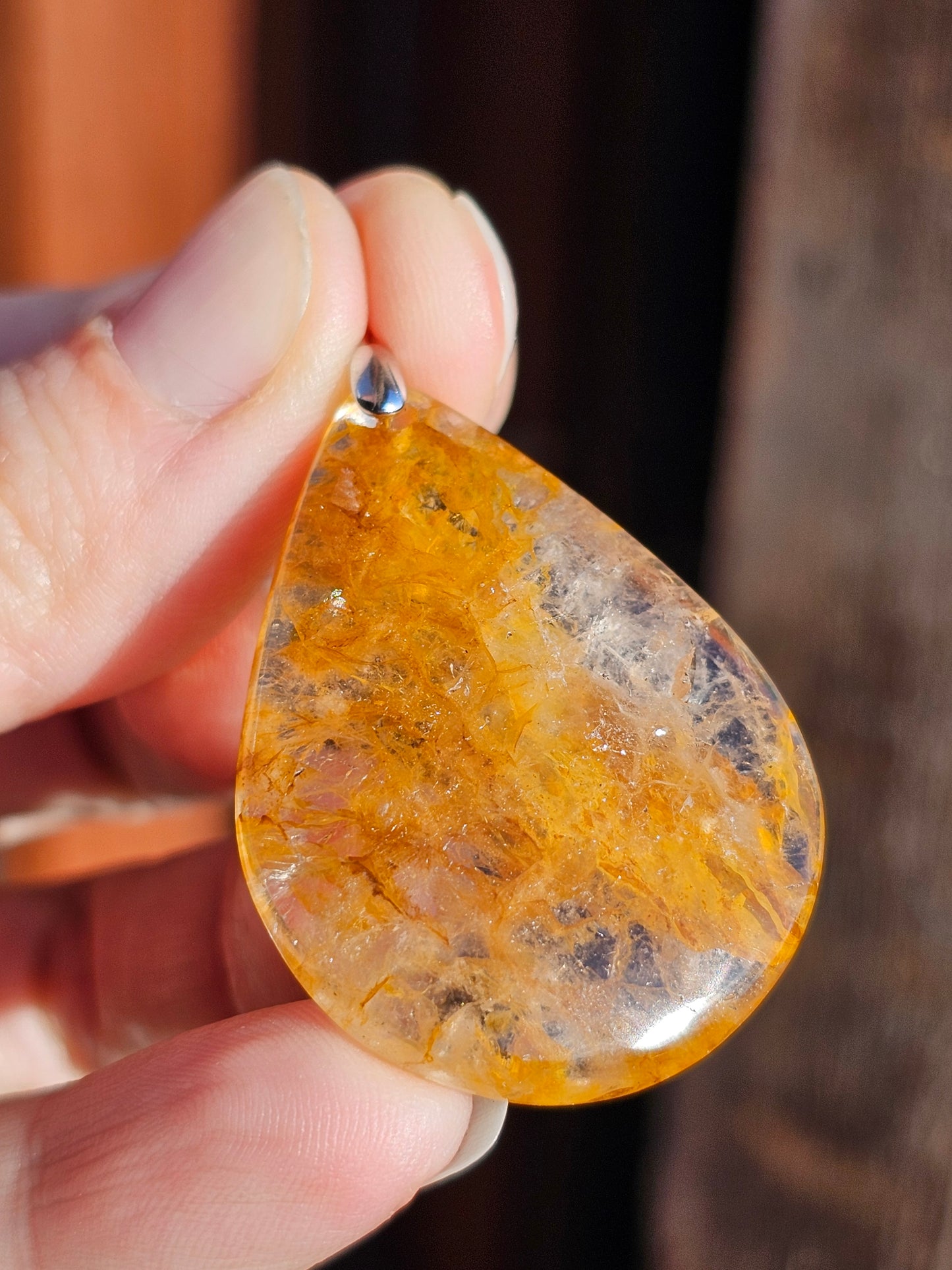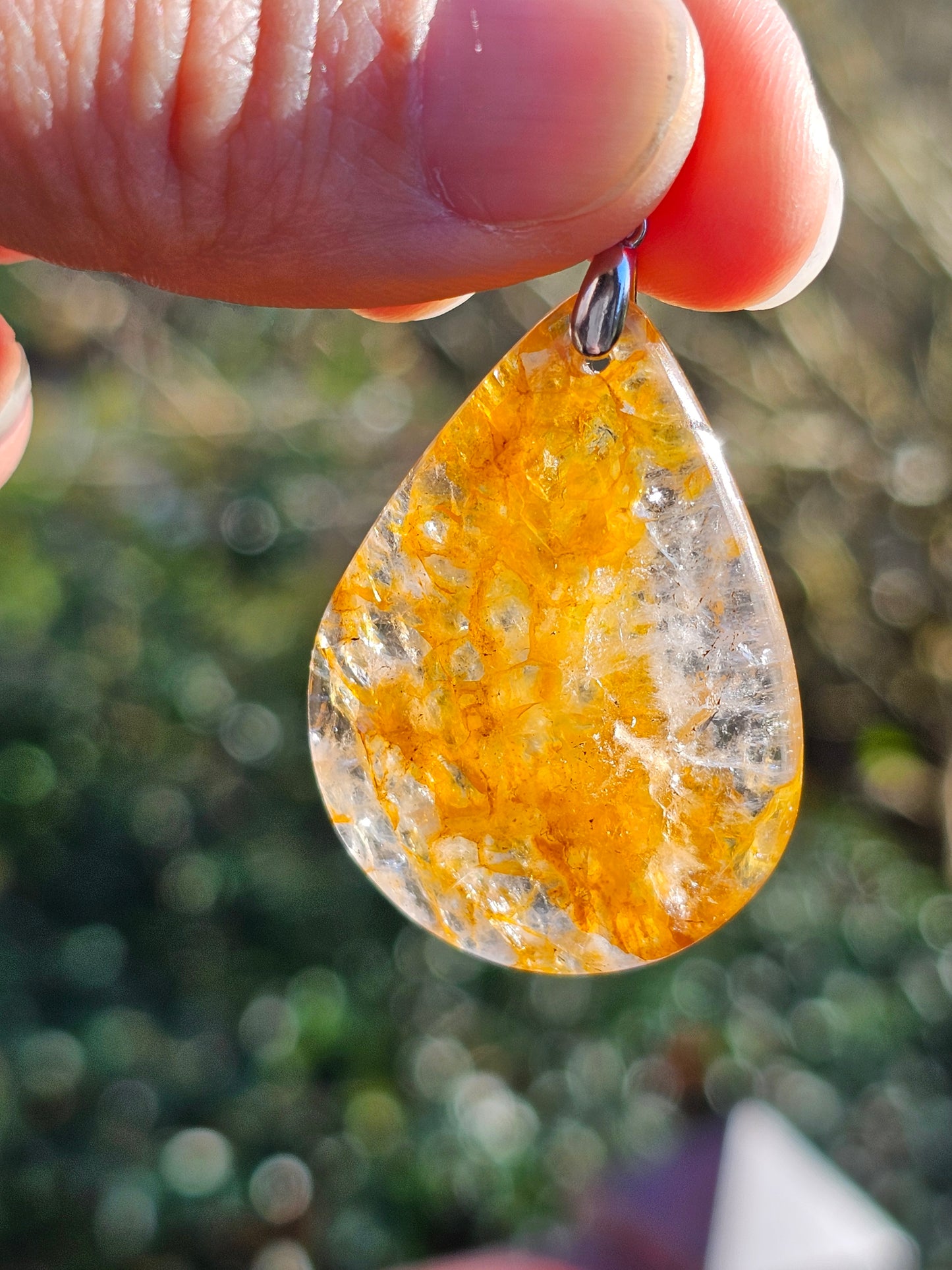 Magnifique pendentif en quartz hématoïde jaune, également appelé Golden healer, monté sur une bélière en argent 925.
