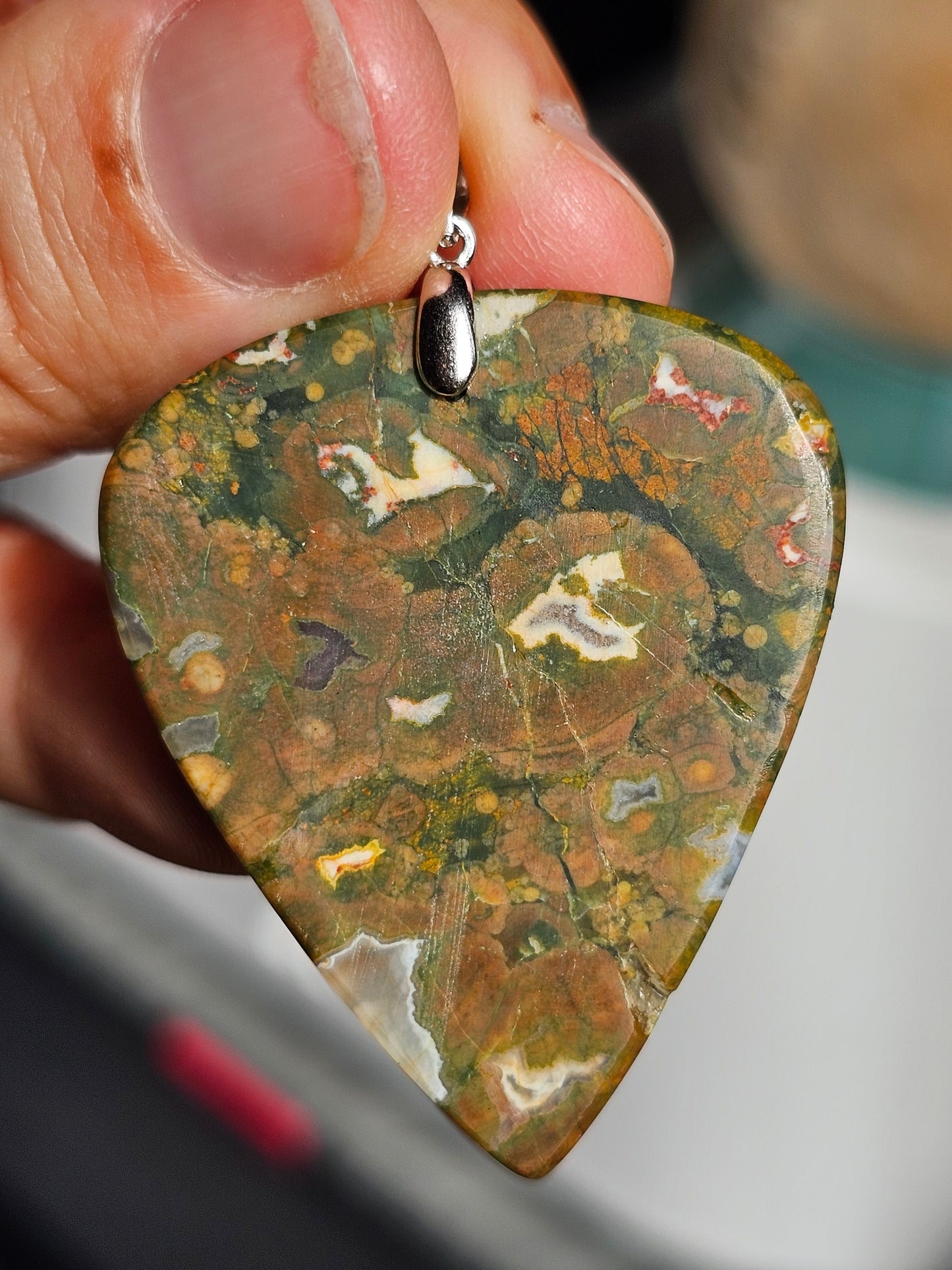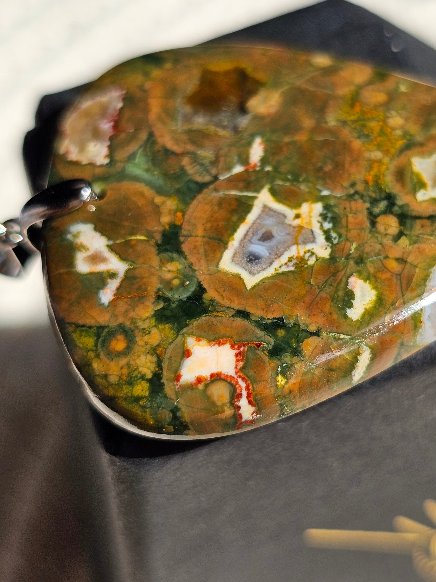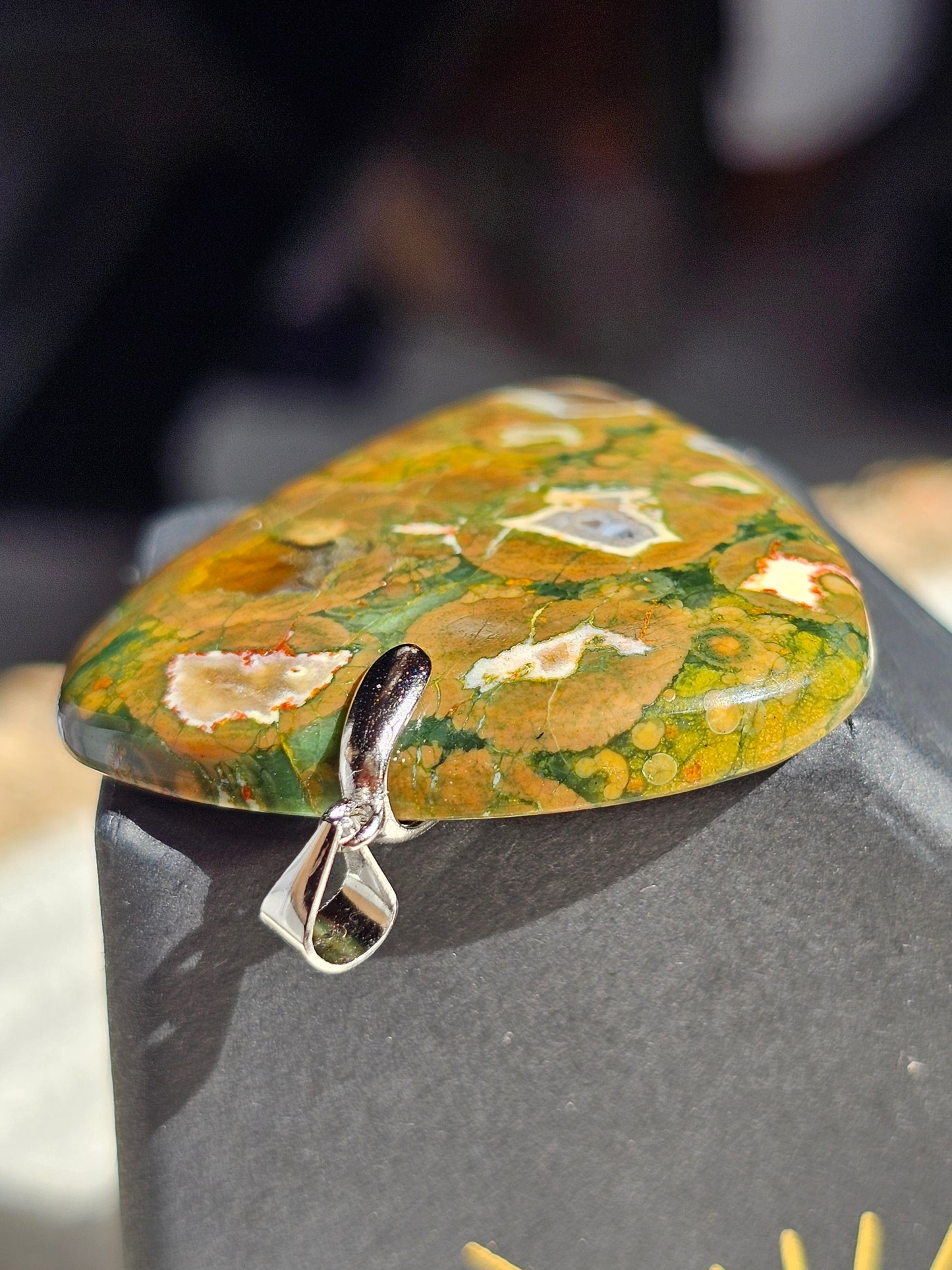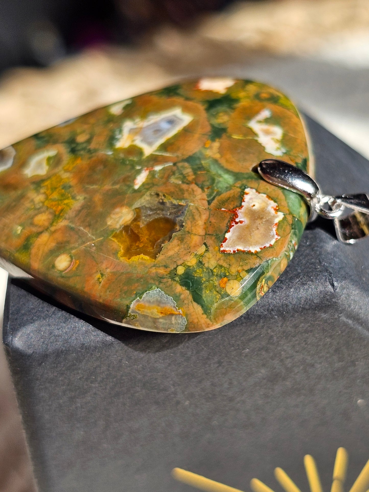Sublime pendentif en Rhyolite monté sur une bélière en argent.