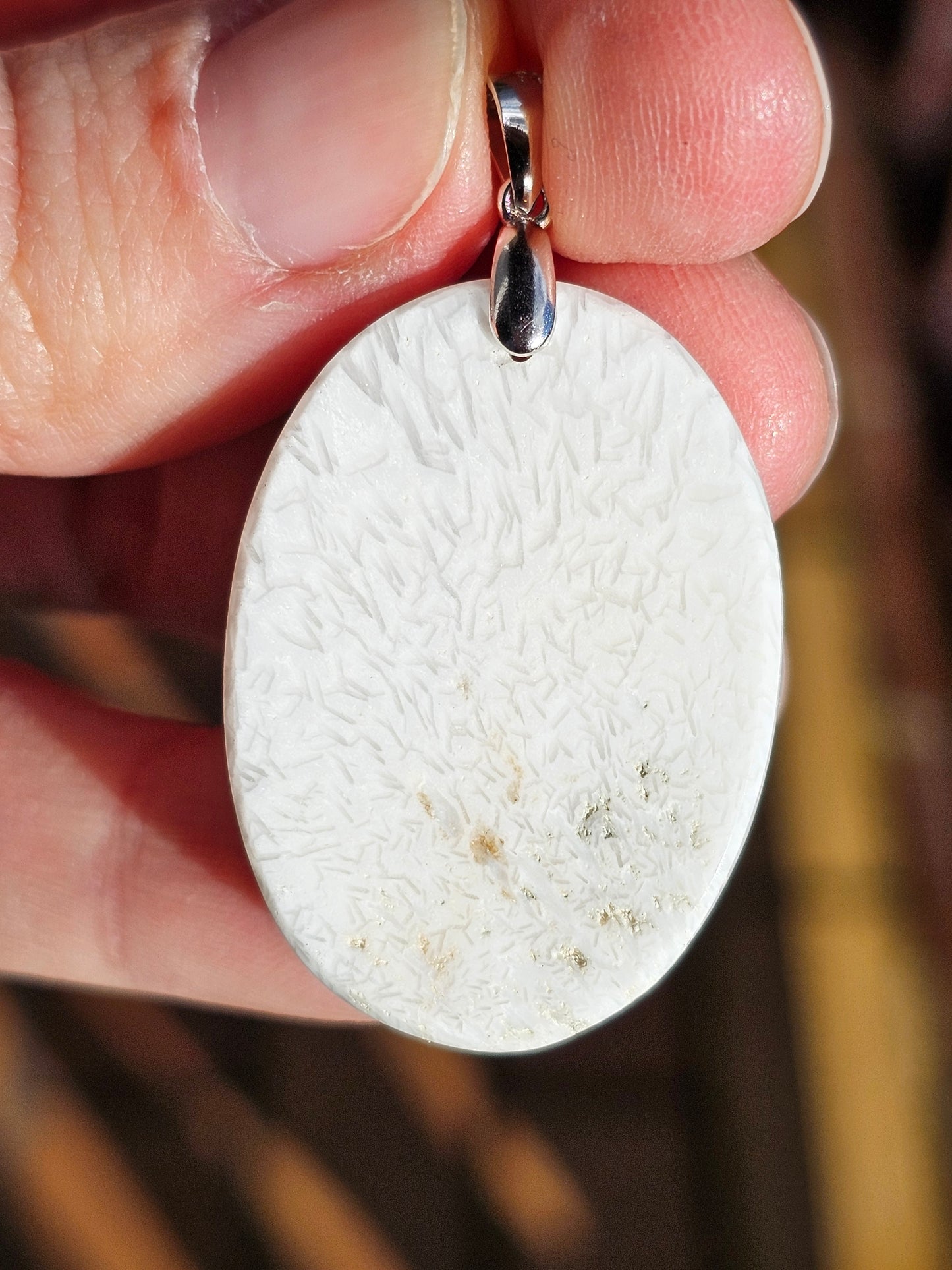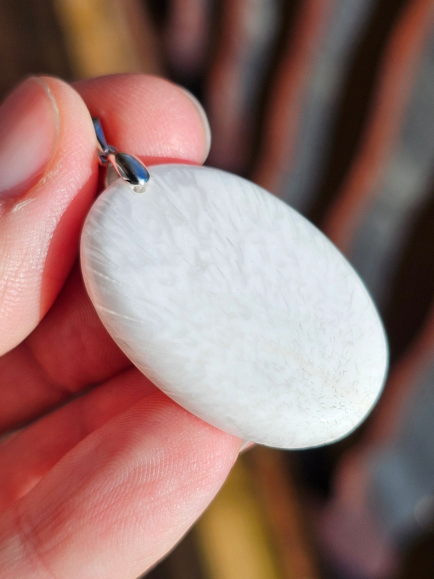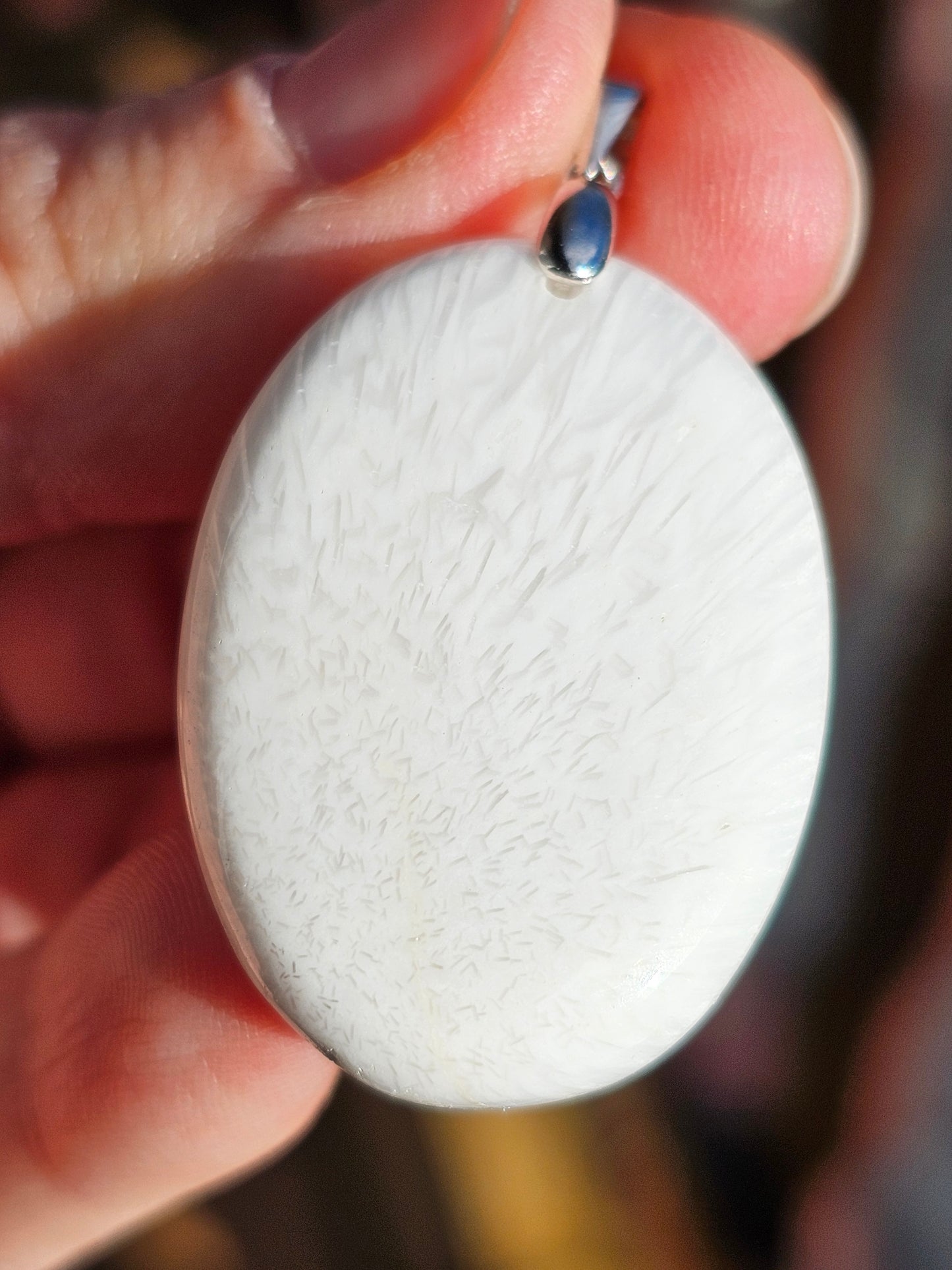 Joli pendentif en Scolécite d'Inde monté sur une bélière en argent 925.