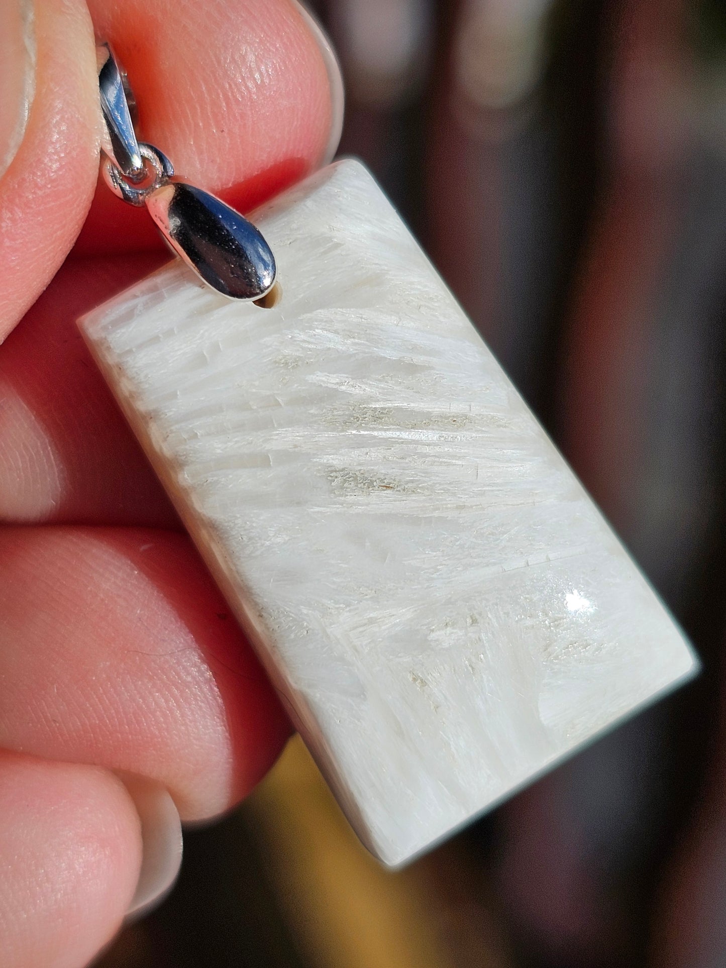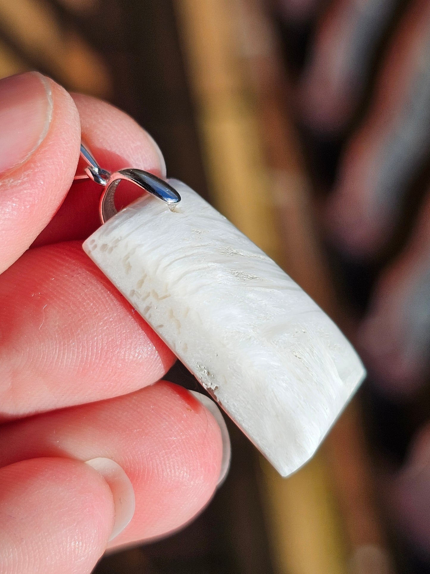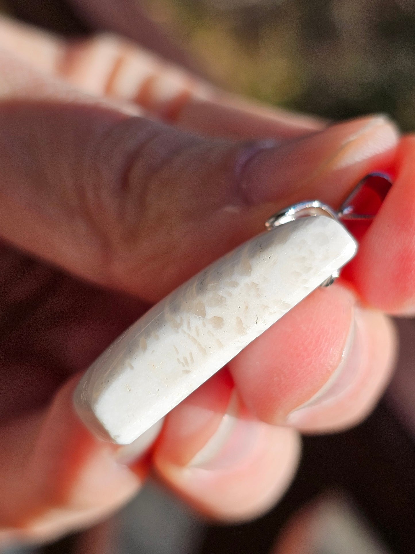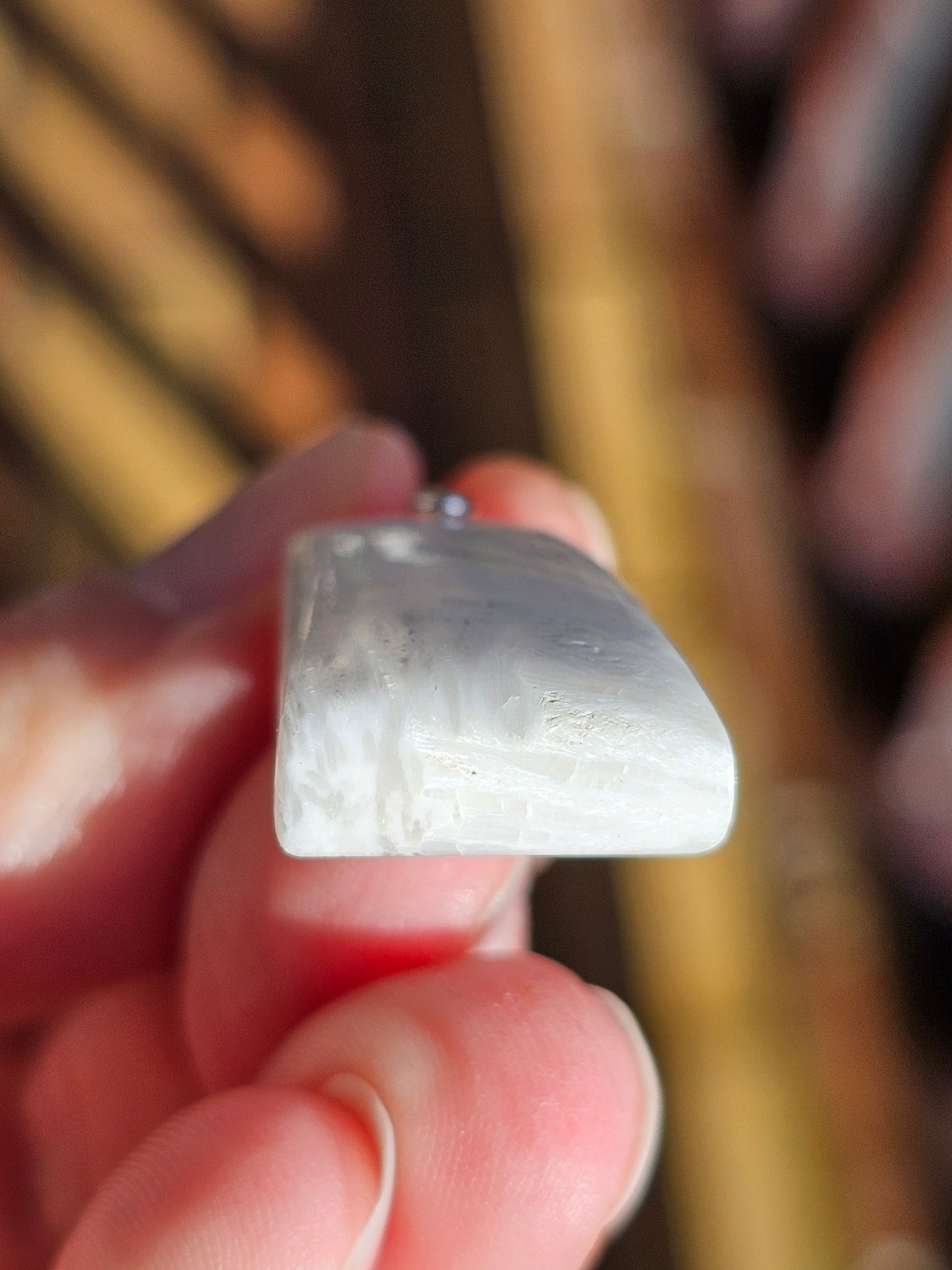 Joli pendentif en Scolécite d'Inde monté sur une bélière en argent 925.