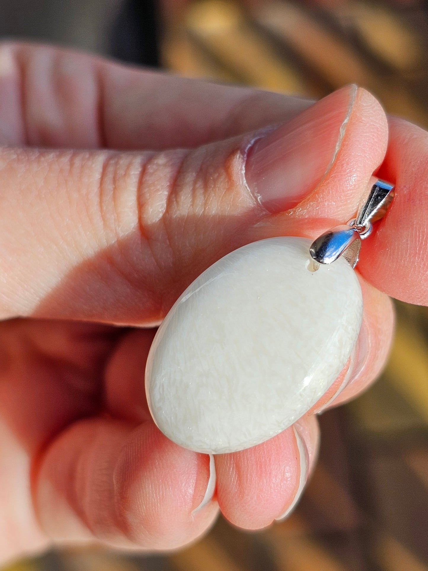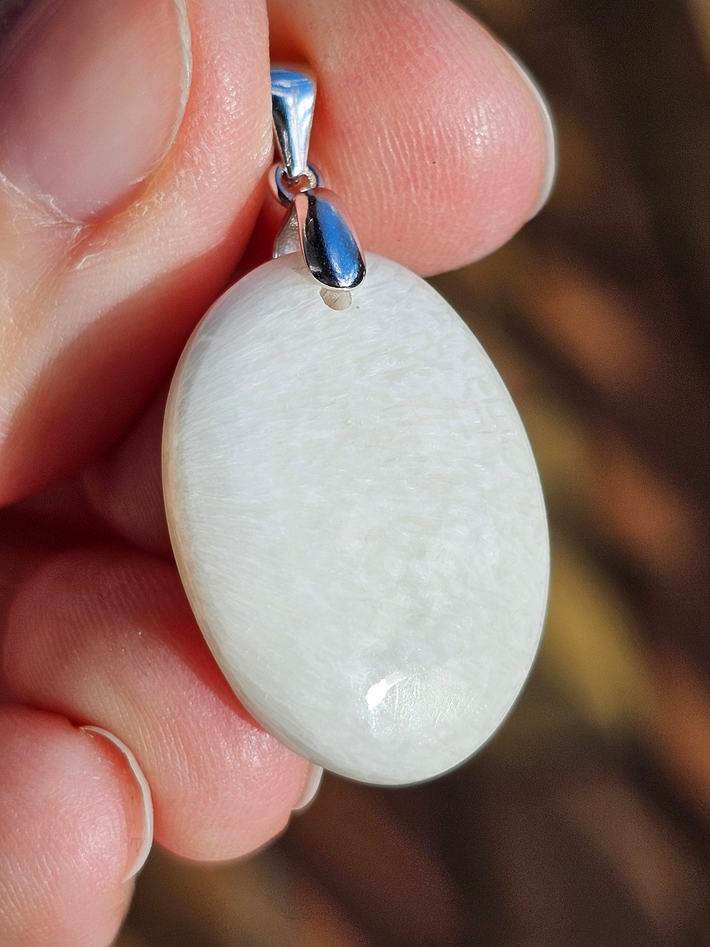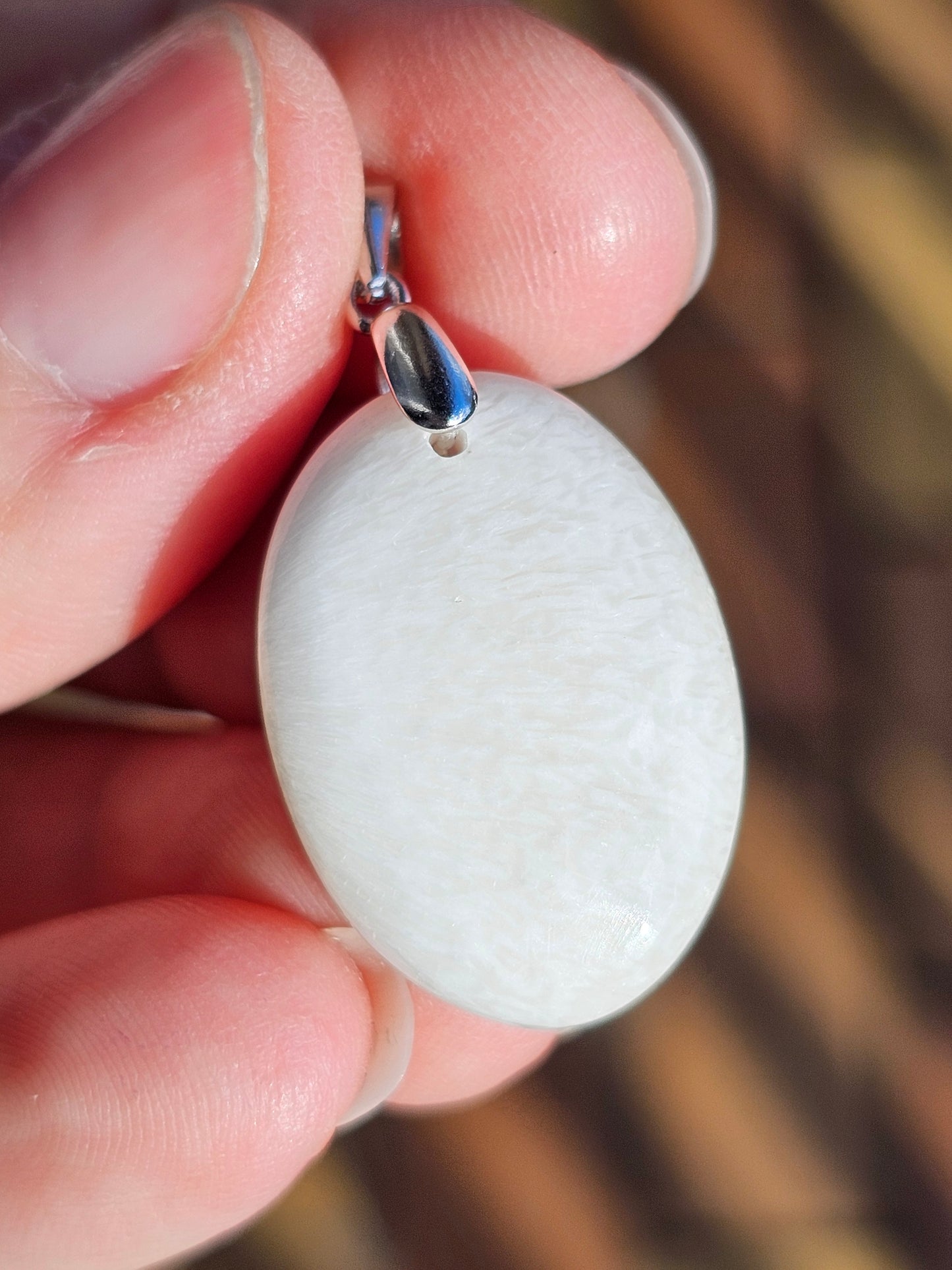 Joli pendentif en Scolécite d'Inde monté sur une bélière en argent 925.