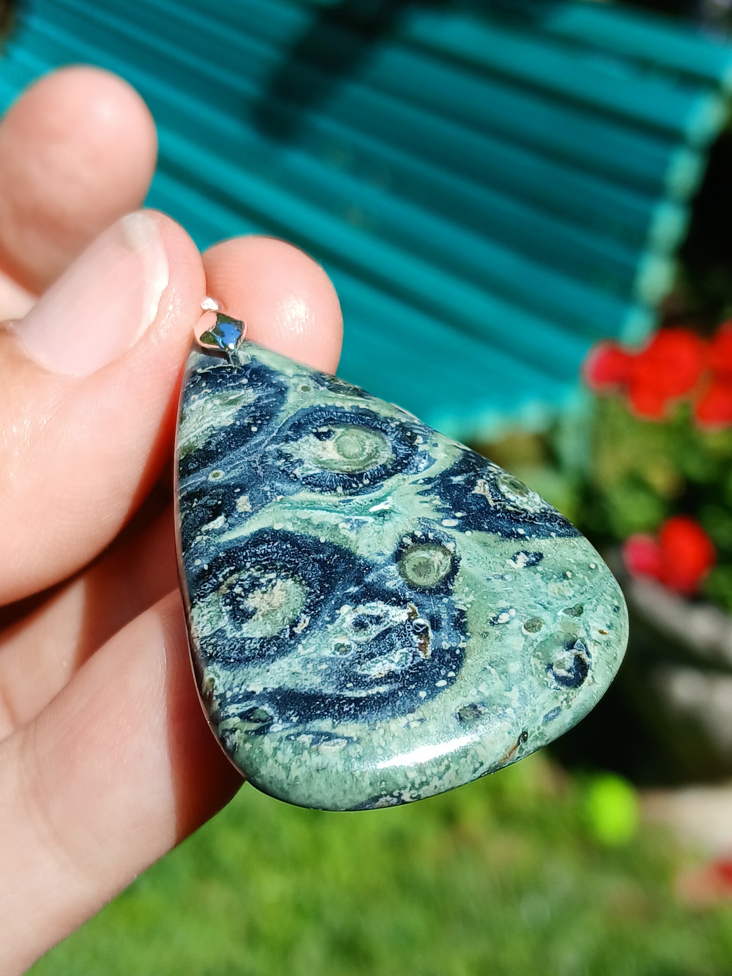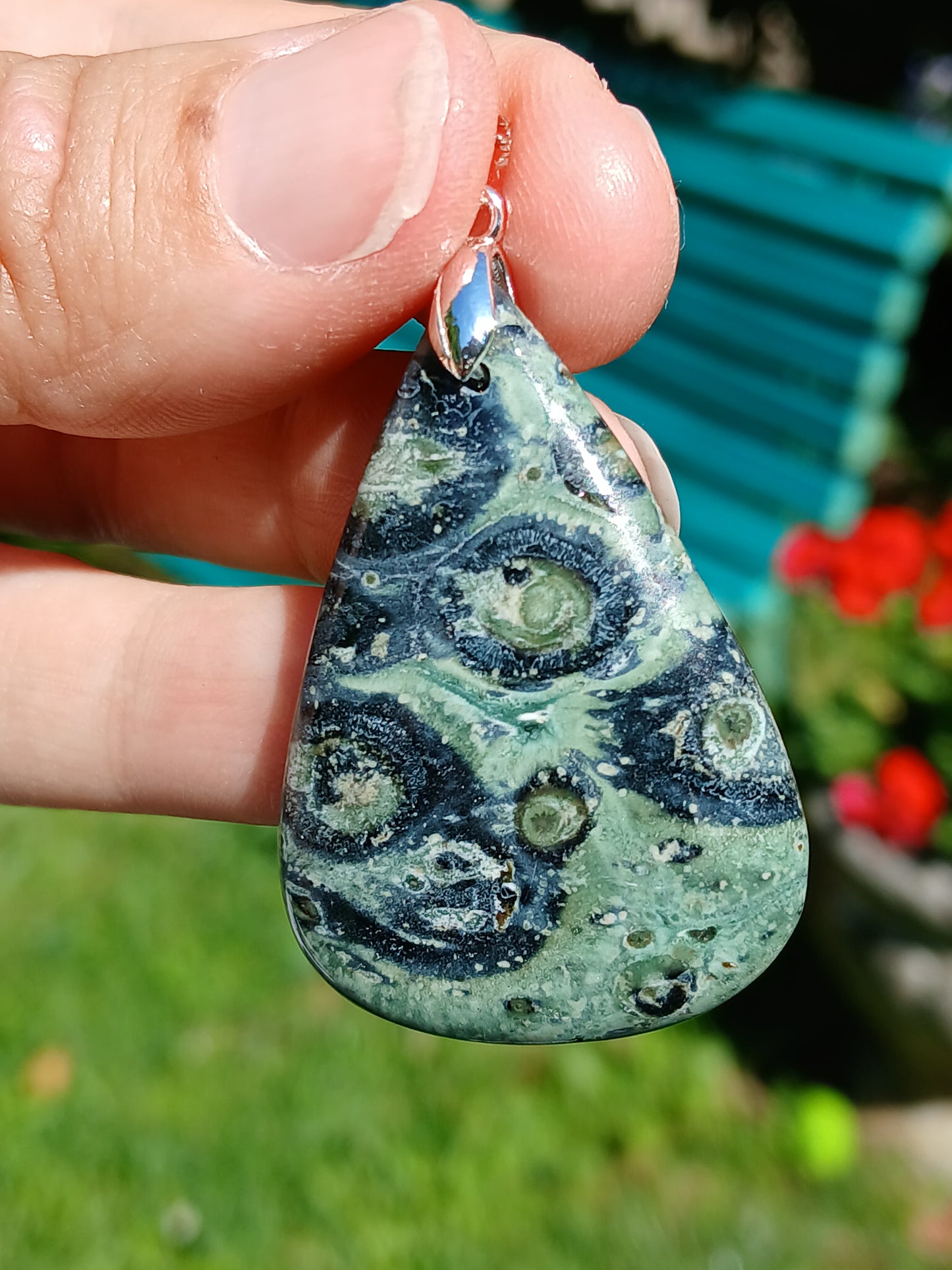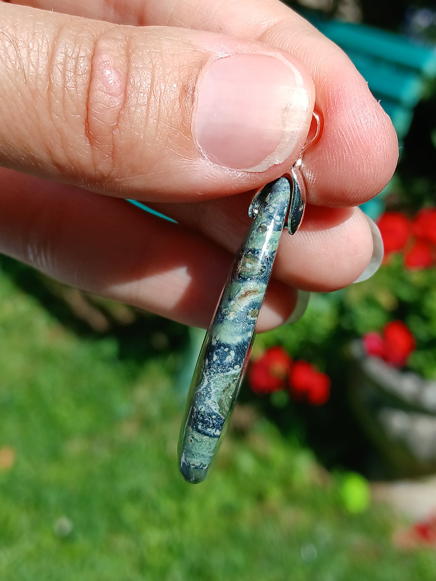 Magnifique pendentif en Jaspe Kambaba (Jaspe crocodile) monté sur une bélière en argent 925.