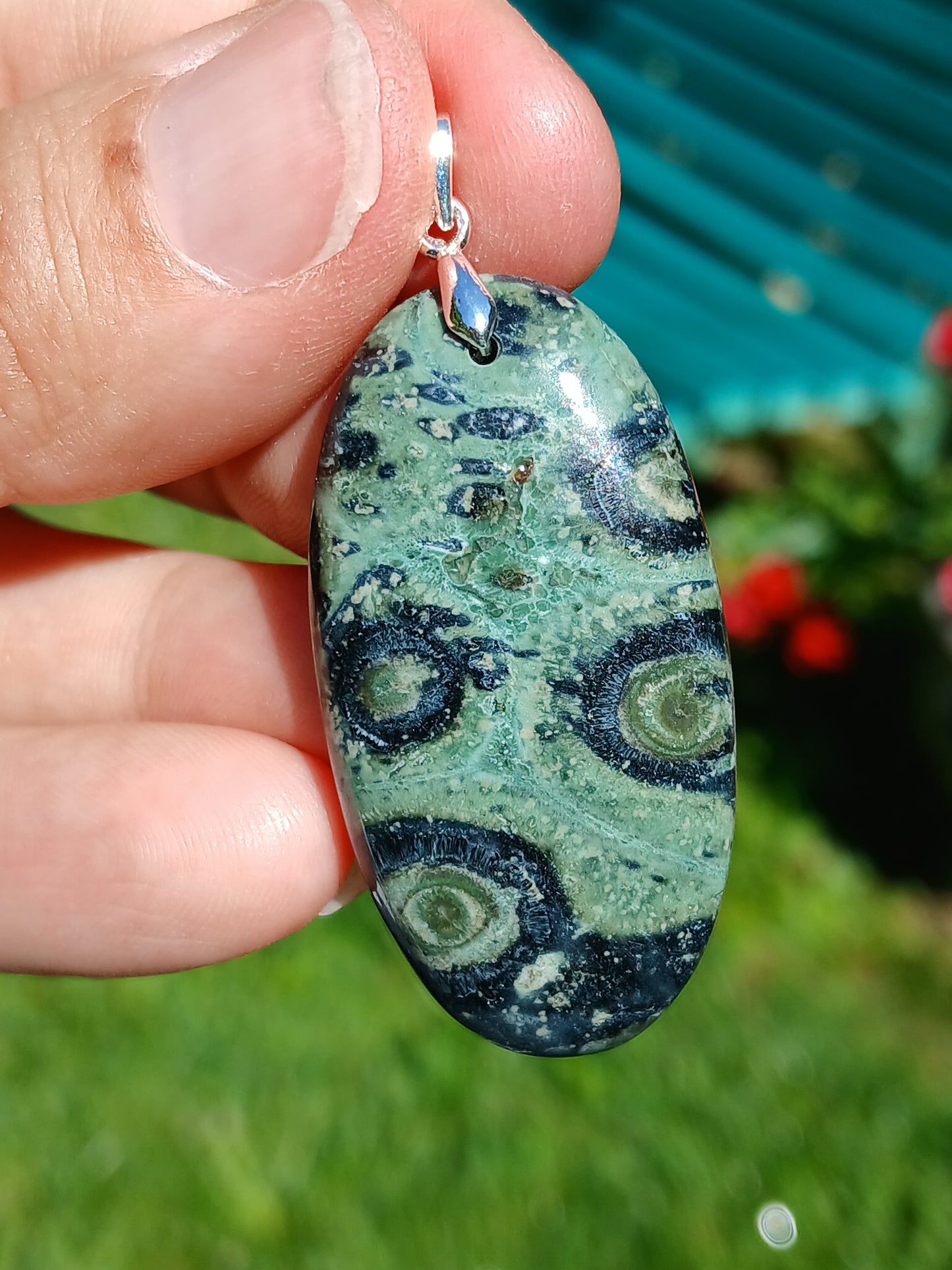 Magnifique pendentif en Jaspe Kambaba (Jaspe crocodile) monté sur une bélière en argent 925.