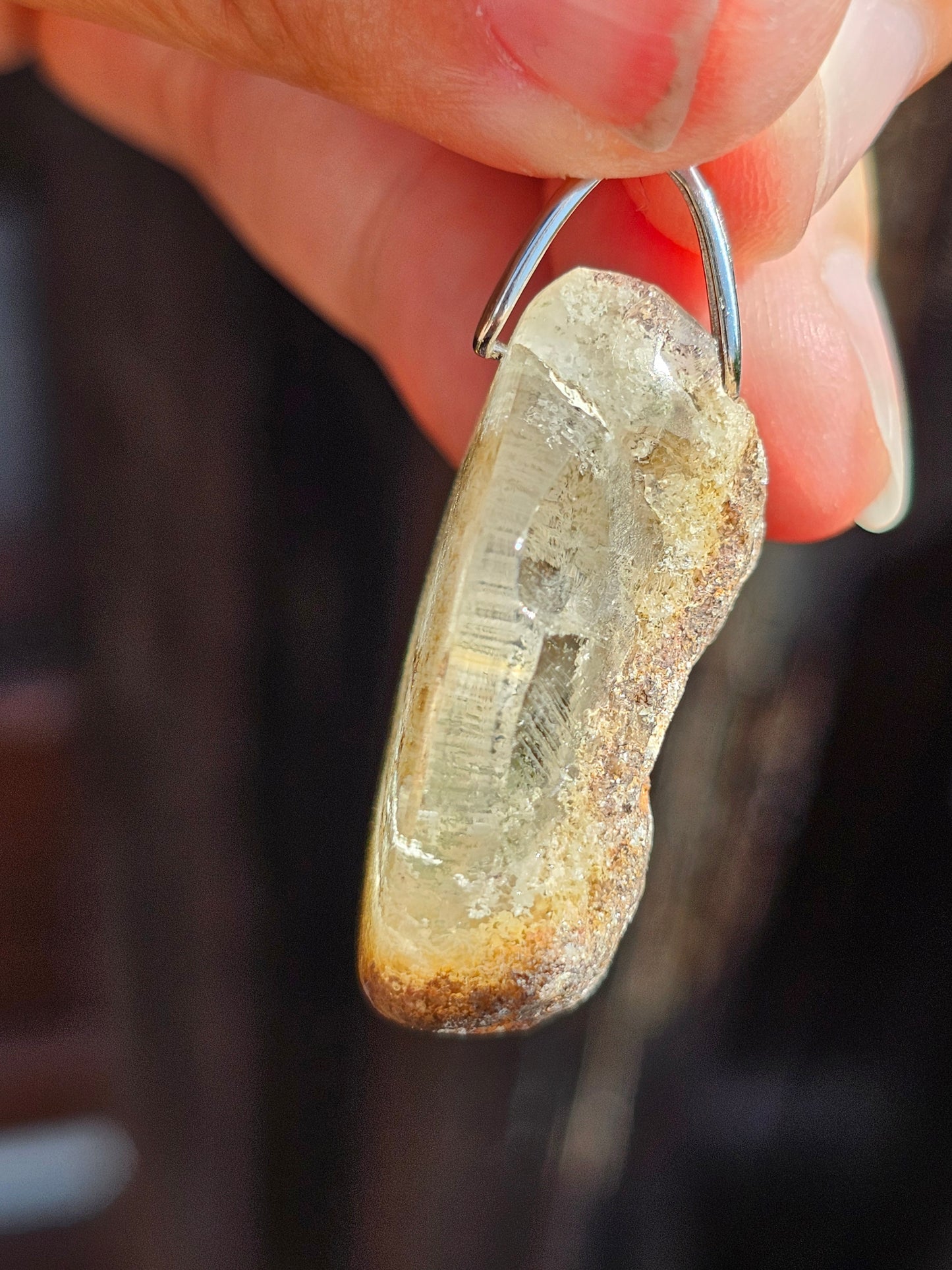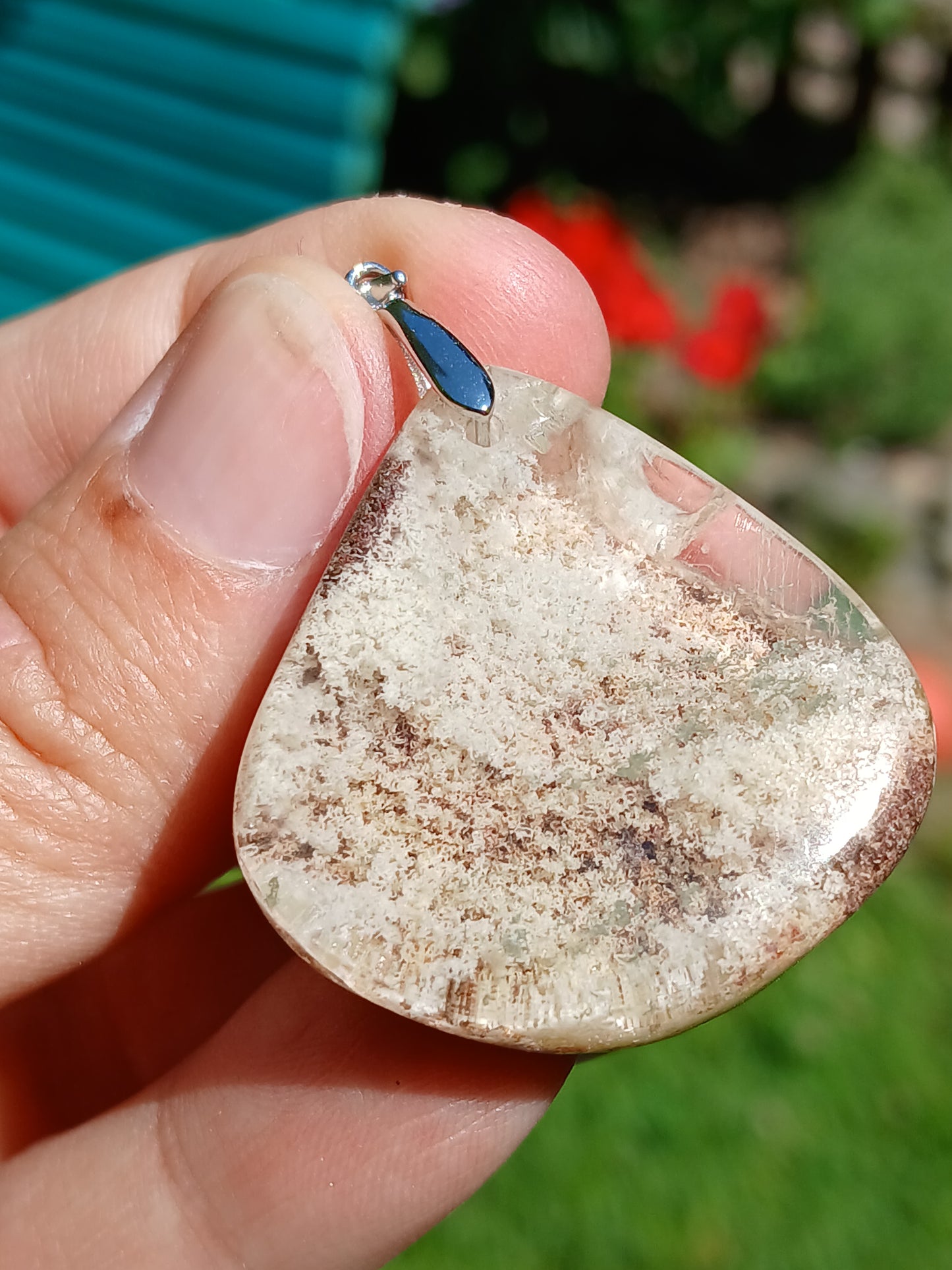 Joli pendentif en Lodolite (Quartz jardin/ quartz chaman) monté sur une bélière en argent 925.