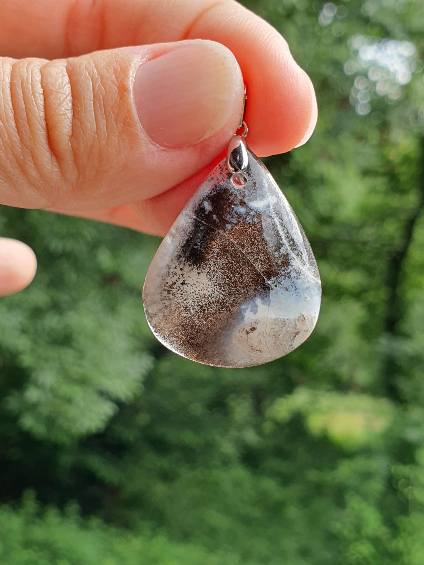 Joli pendentif en Opale dendritique d'Inde monté sur une bélière en argent 925. (vidéo ici).