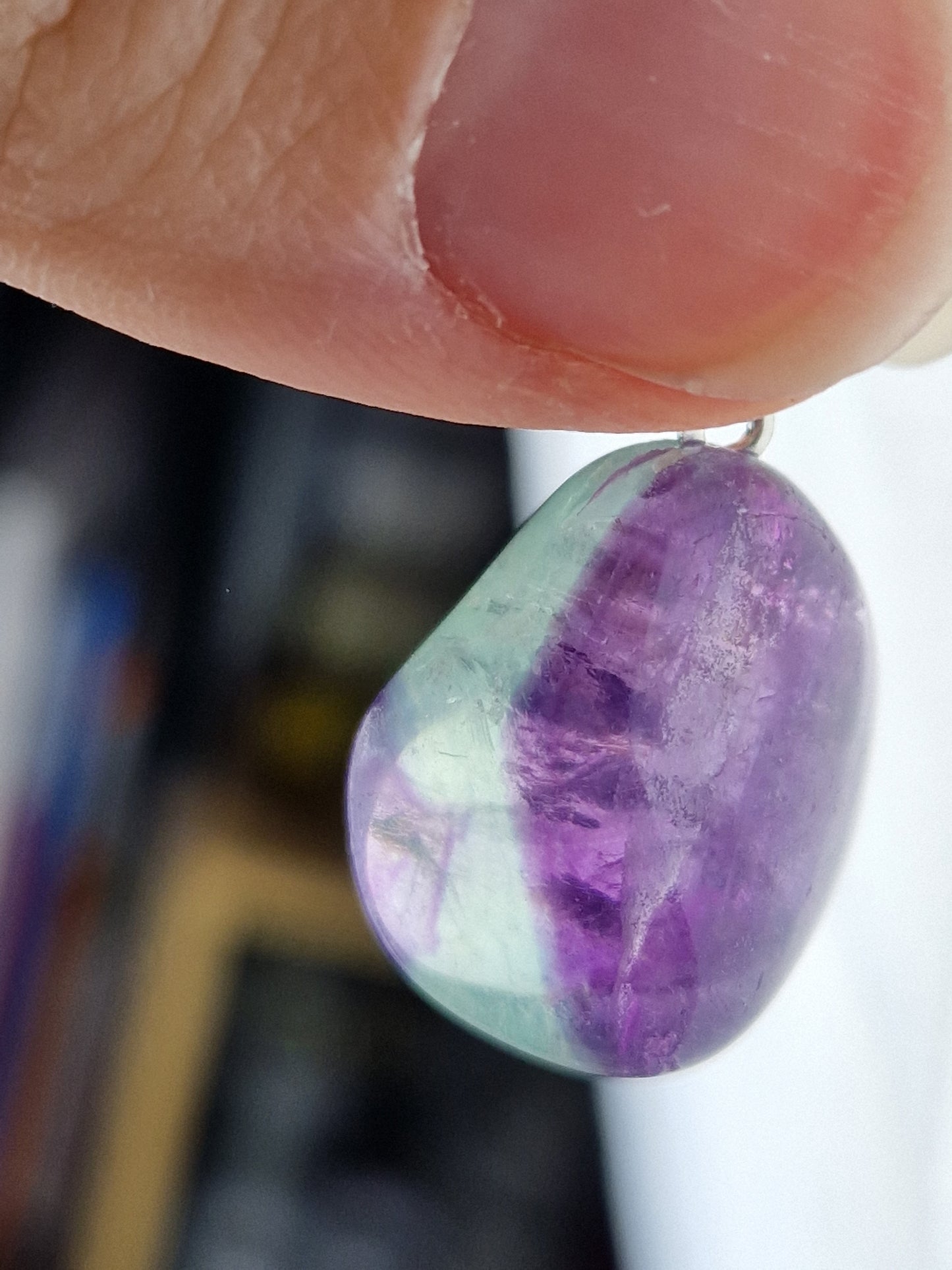 Superbe pendentif en Fluorite de Chine livré dans un petit pochon.