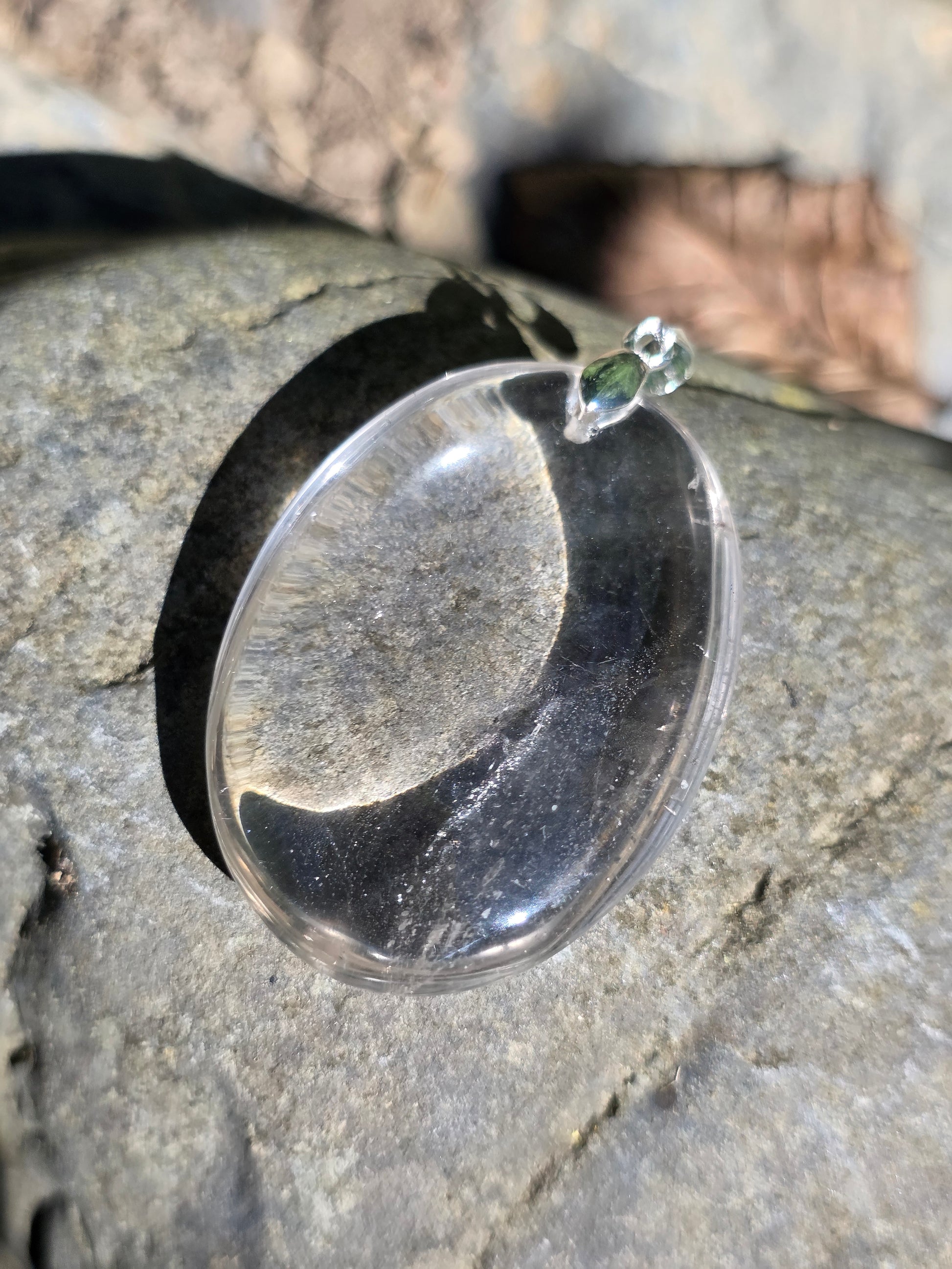 Joli pendentif en Quartz fumé clair du Brésil monté sur une bélière en argent 925.