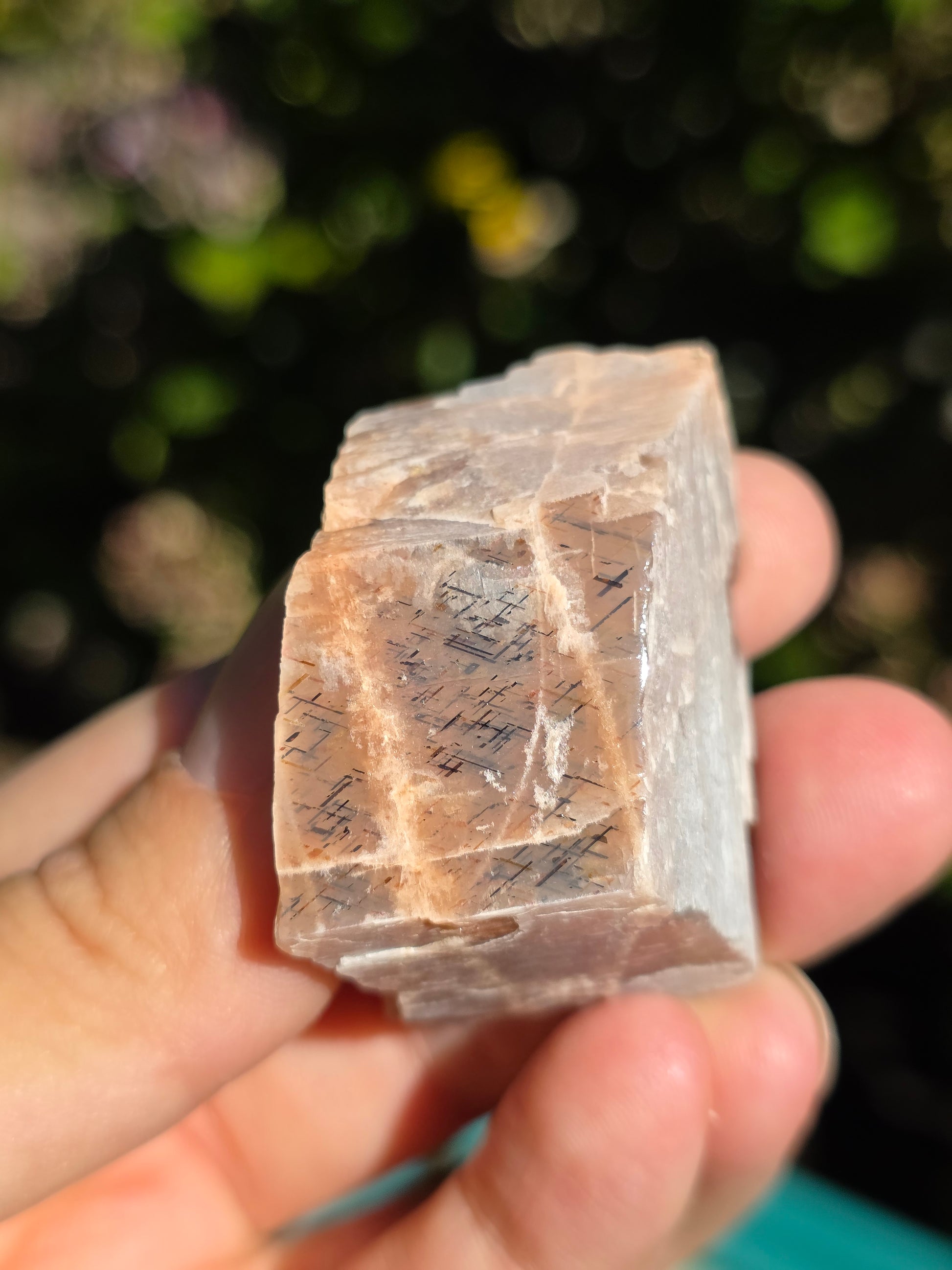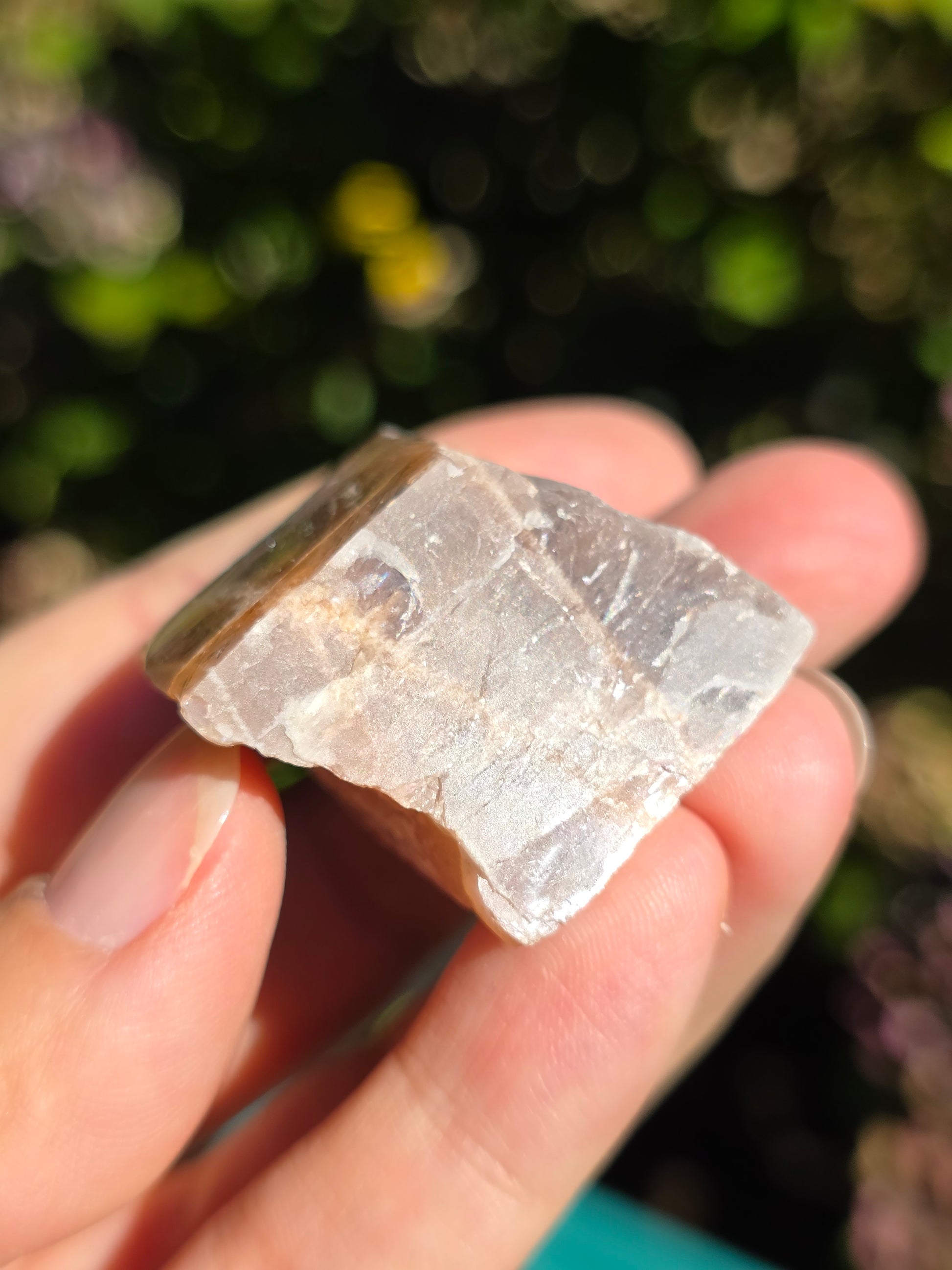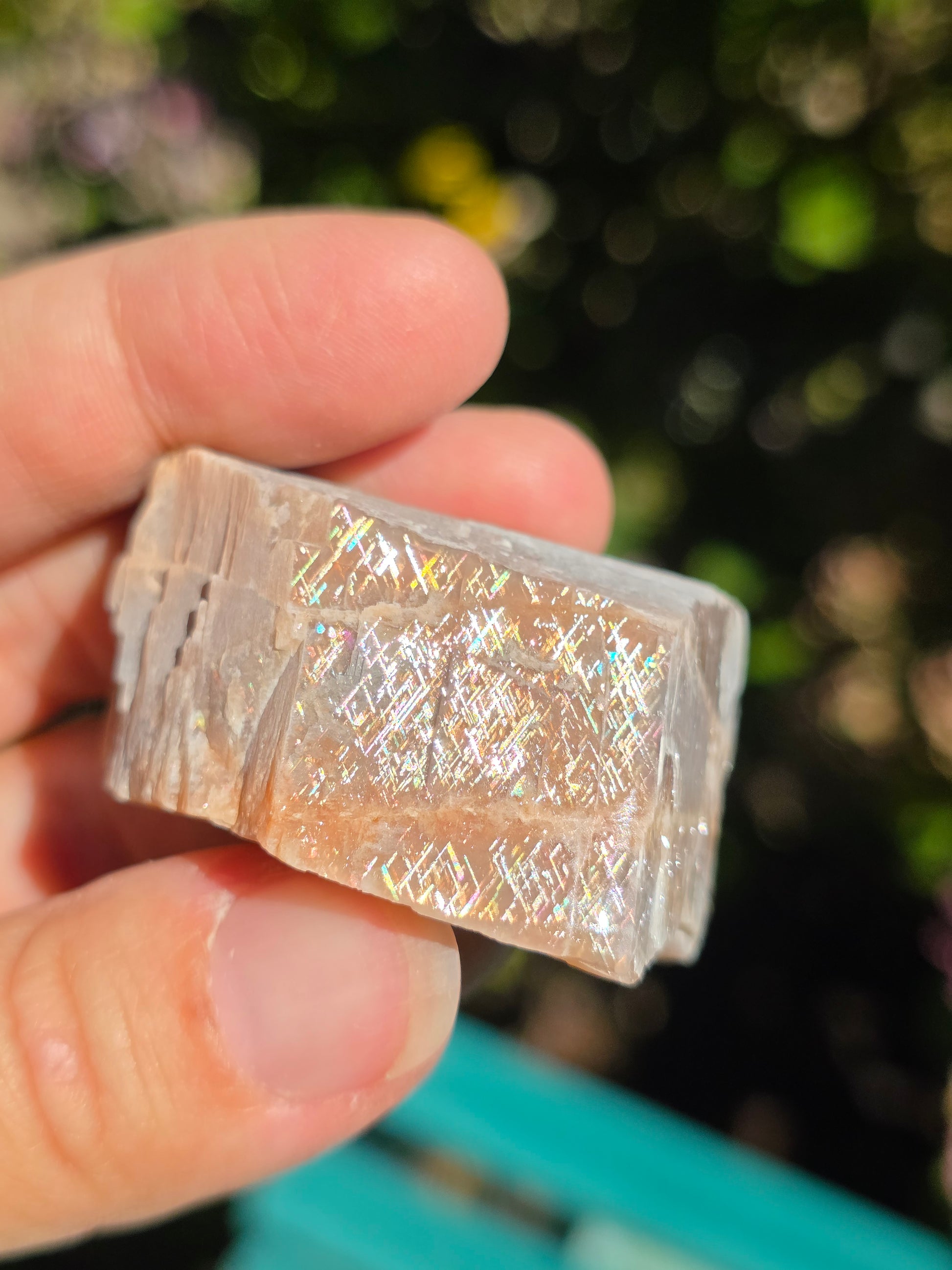 Sublime Rainbow Lattice sunstone d'Australie semi brute, semi polie, reconnaissable grâce à son maillage croisé arc en ciel. Cette variété de pierre de soleil est très rare et très recherchée. (vidéo ici).