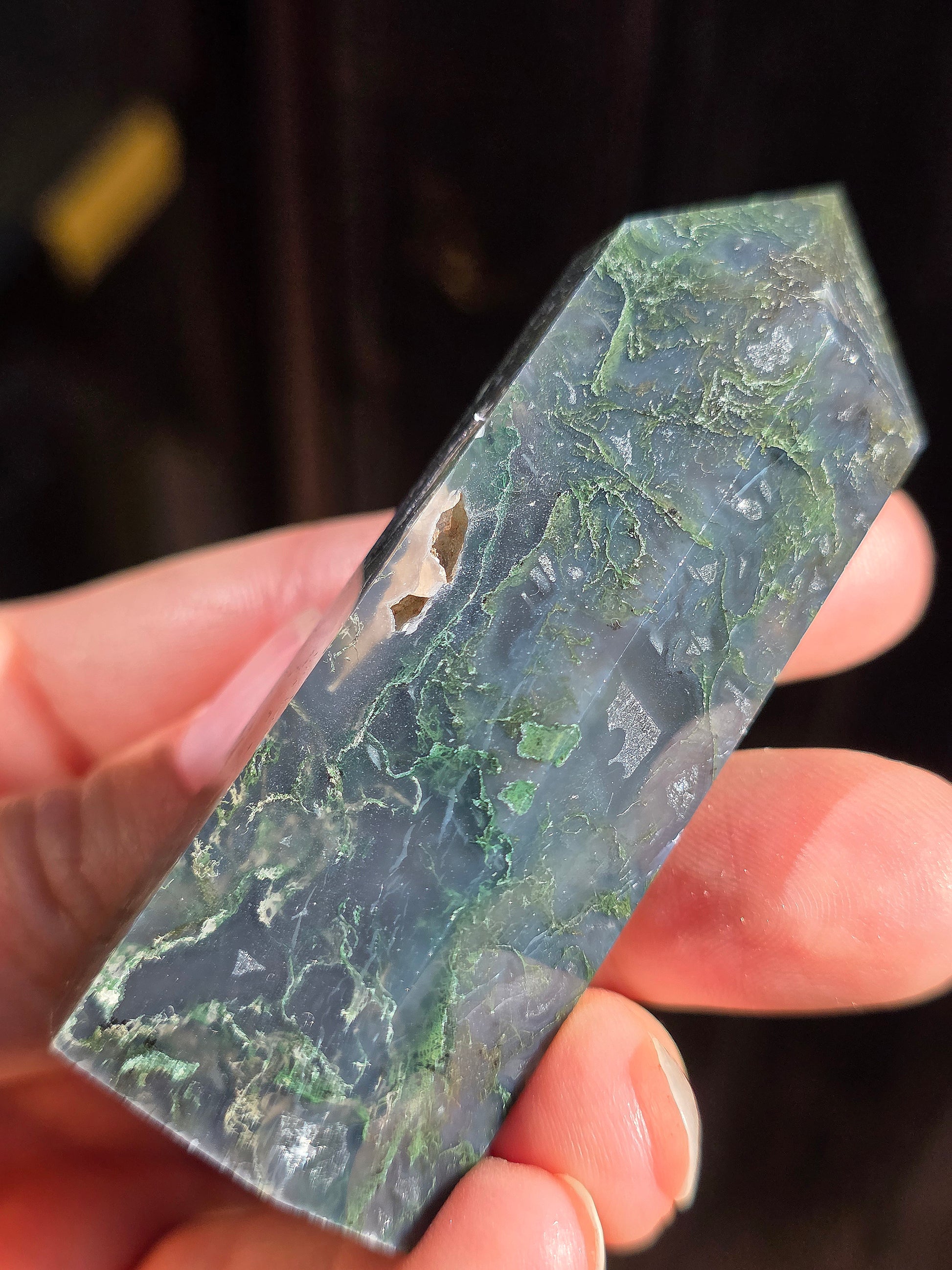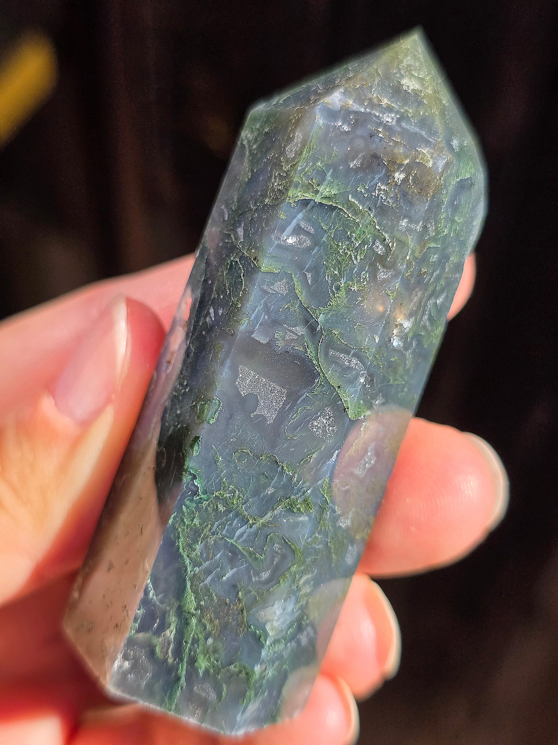 Superbe pointe en Agate mousse de Madagascar.