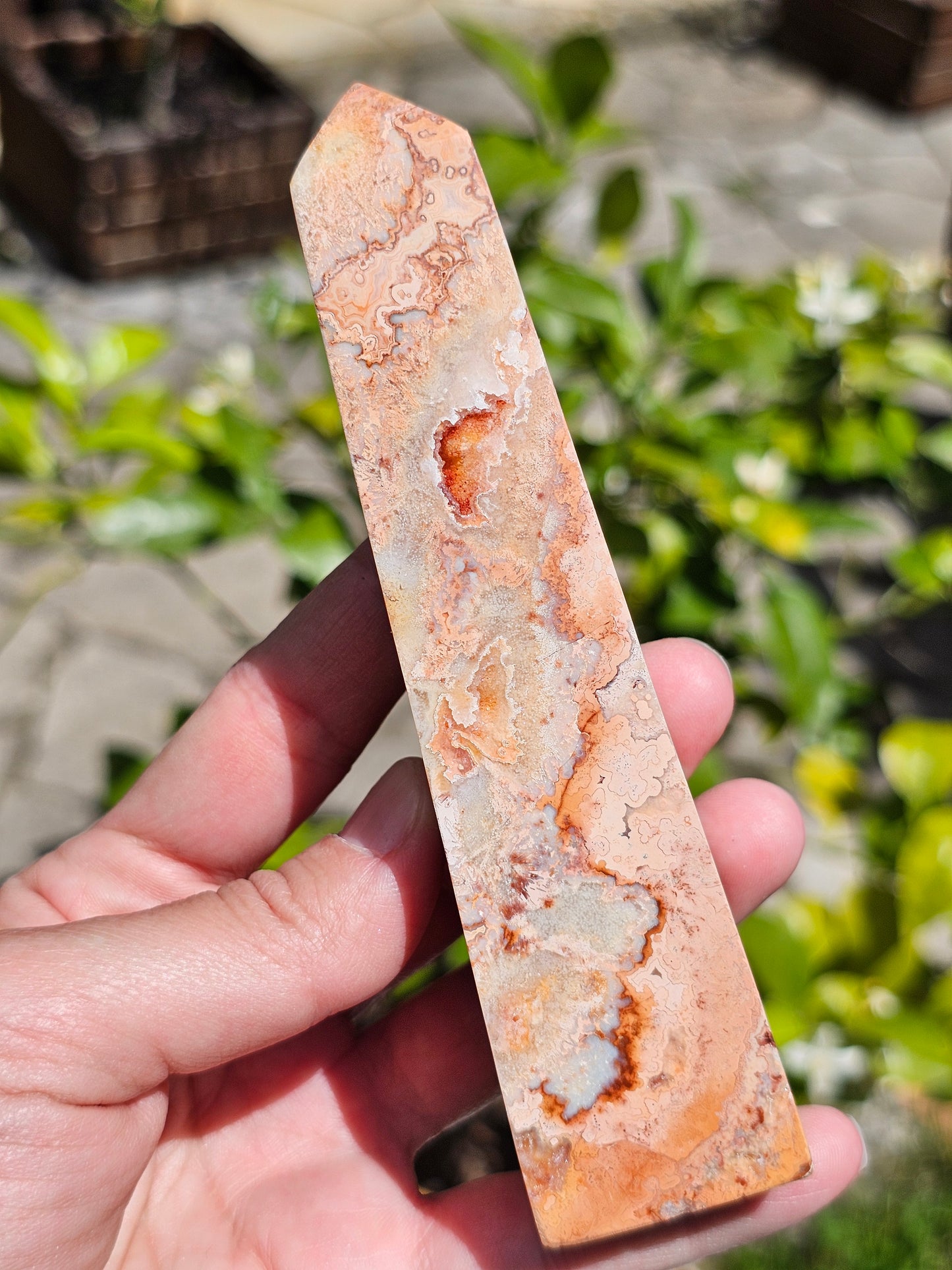Magnifique Pointe "druzy" d'Agate crazy lace rouge d'Indonésie.