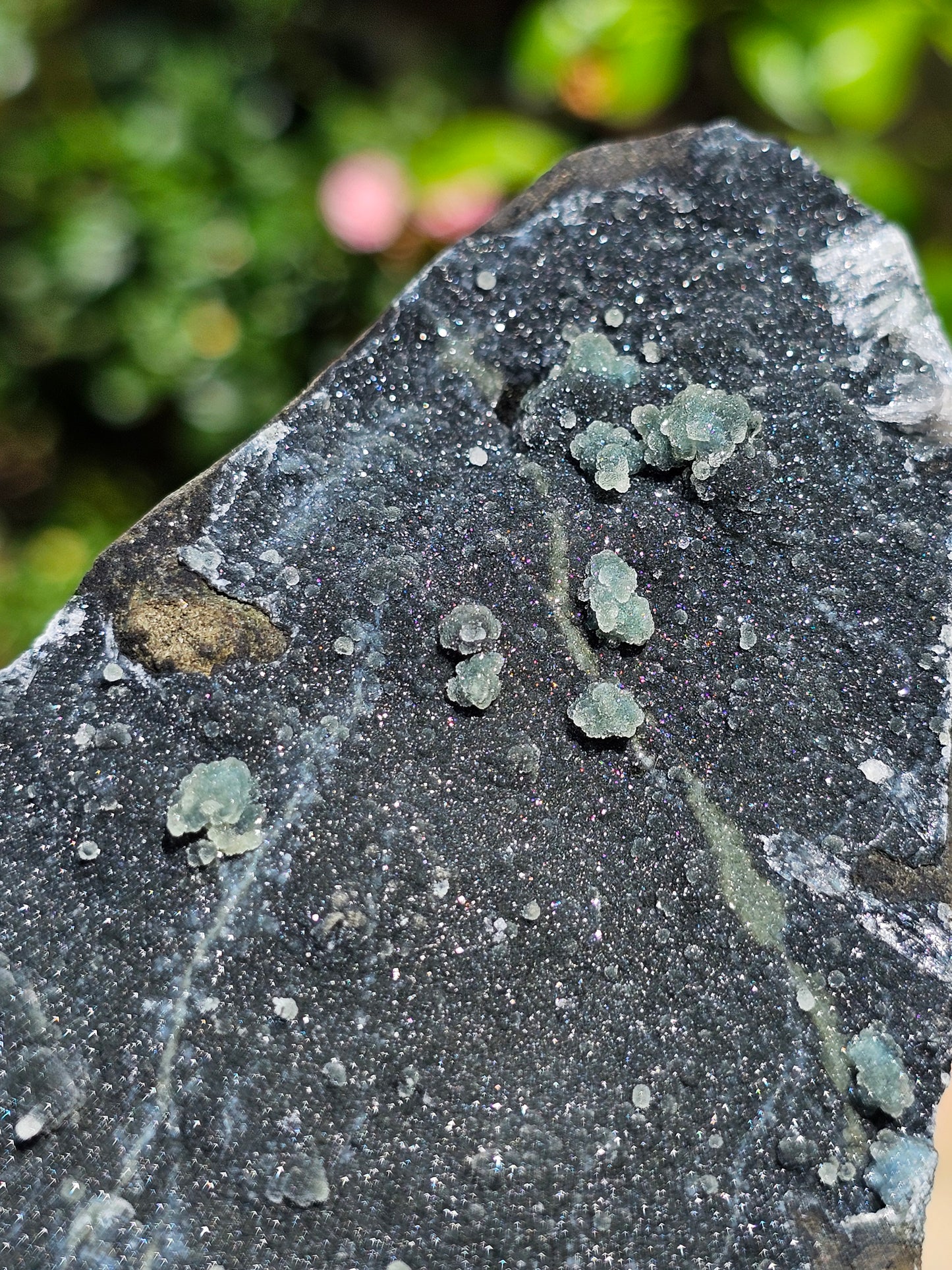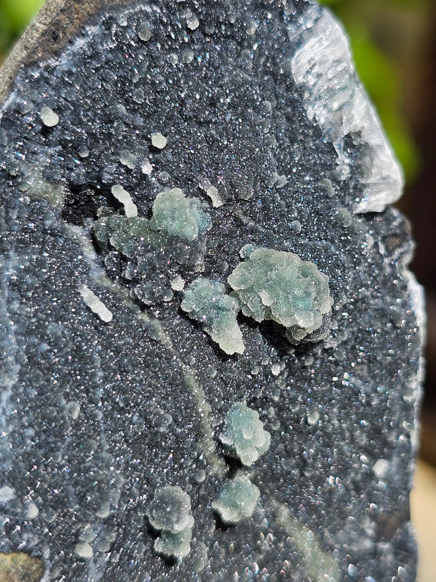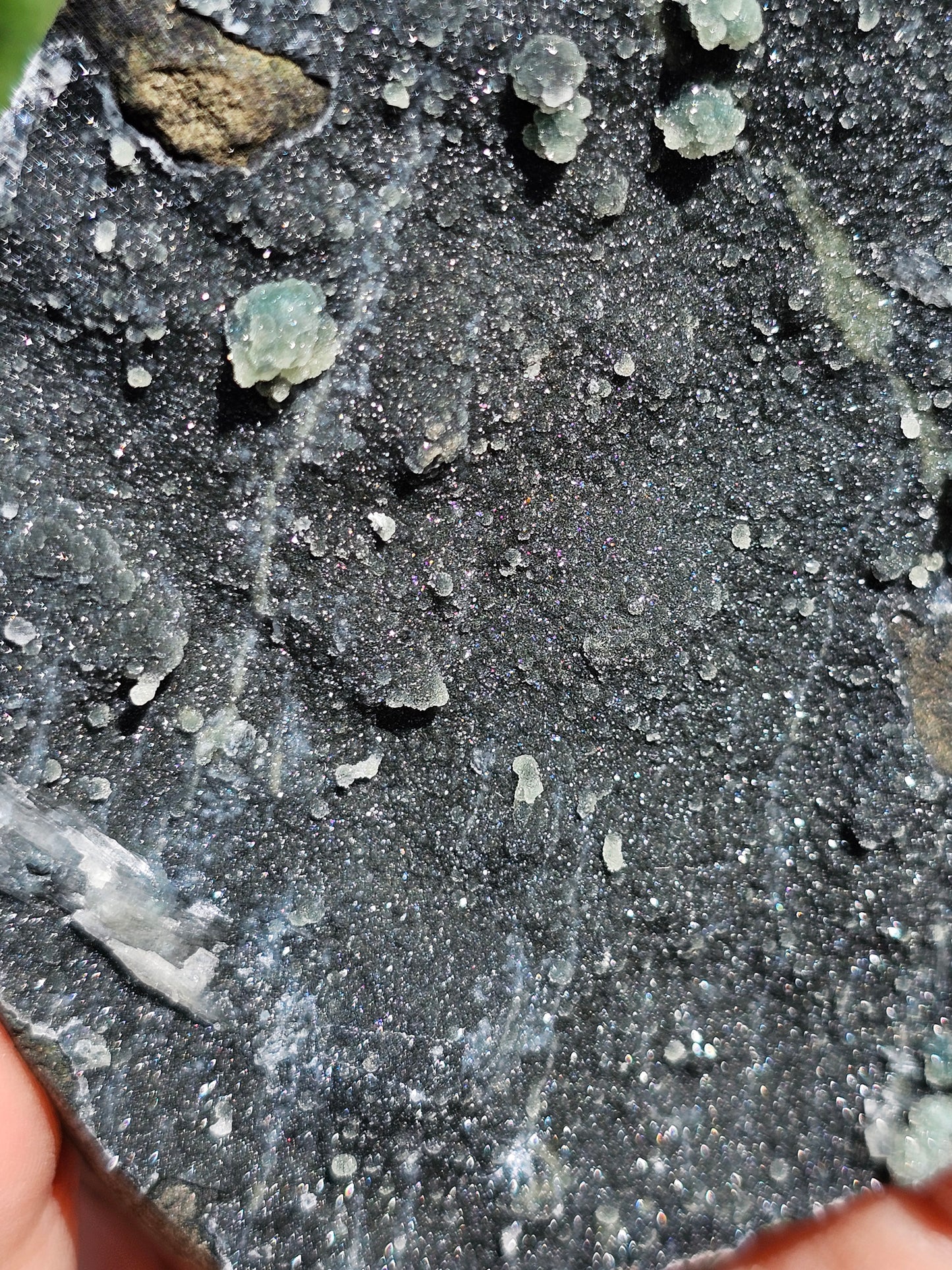 Jolie Prehnite sur Calcédoine noire en provenance d'Inde.