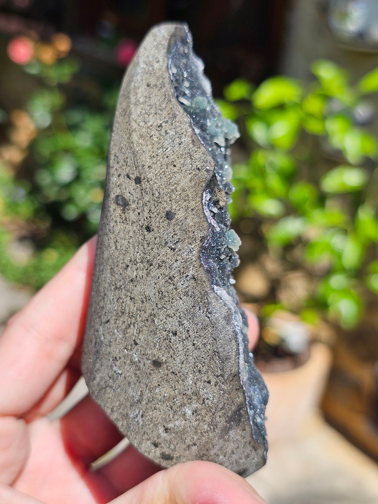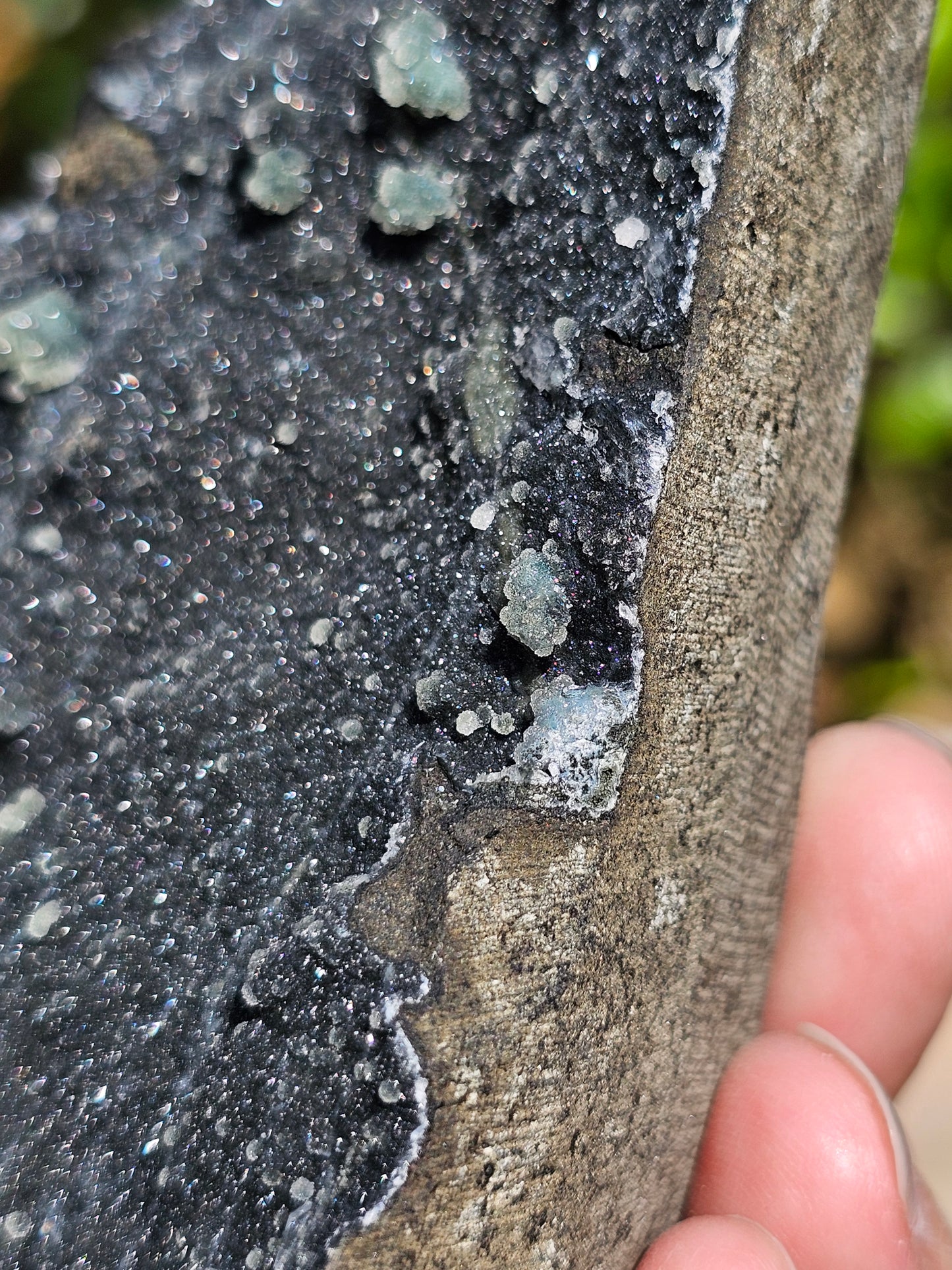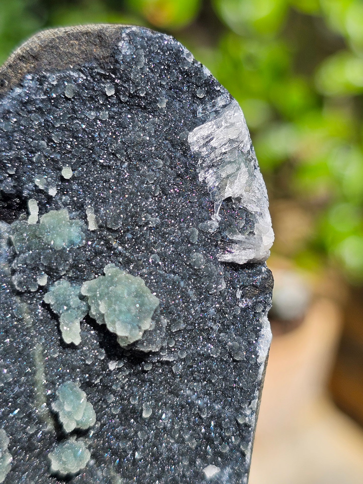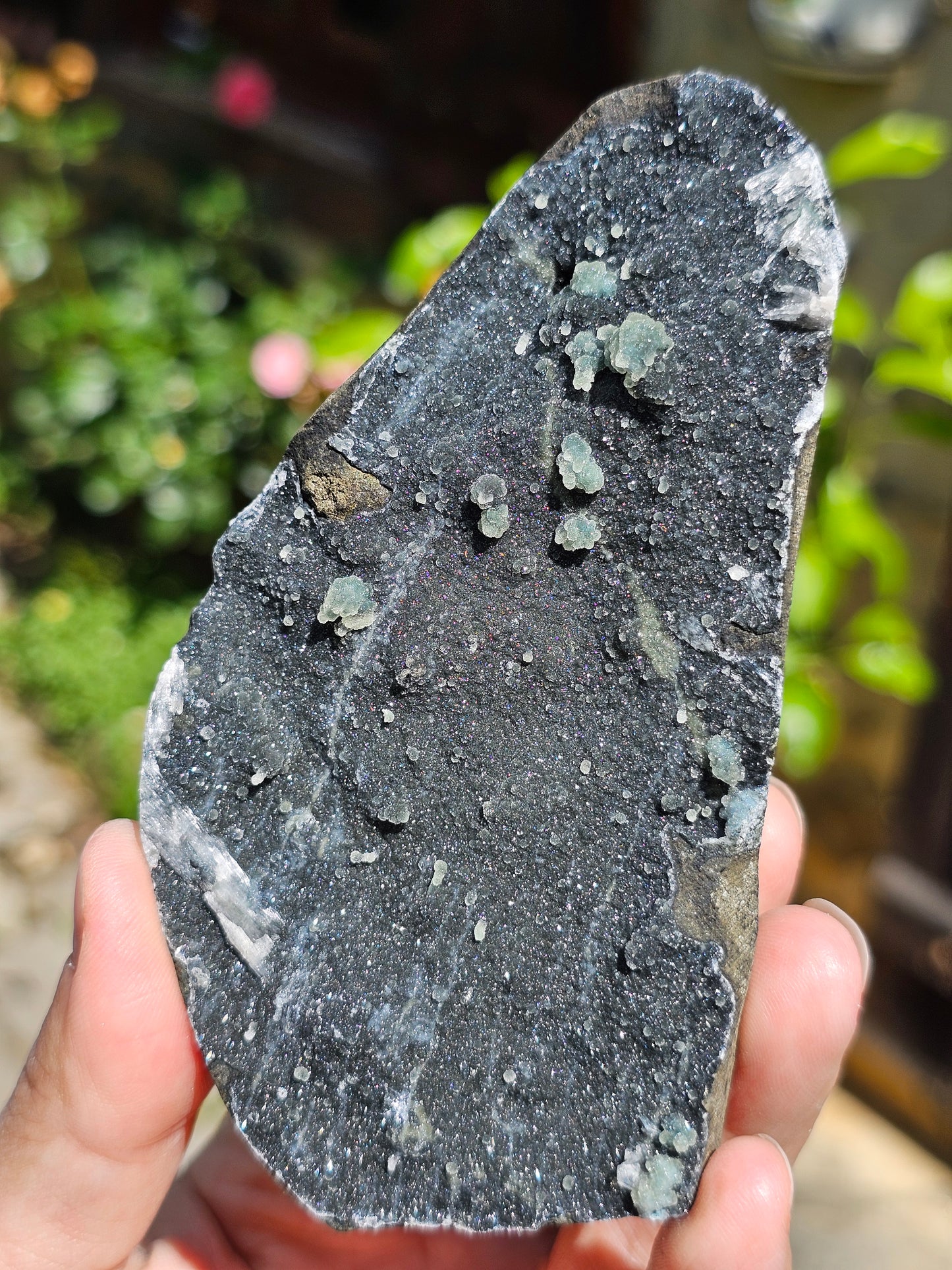 Jolie Prehnite sur Calcédoine noire en provenance d'Inde.