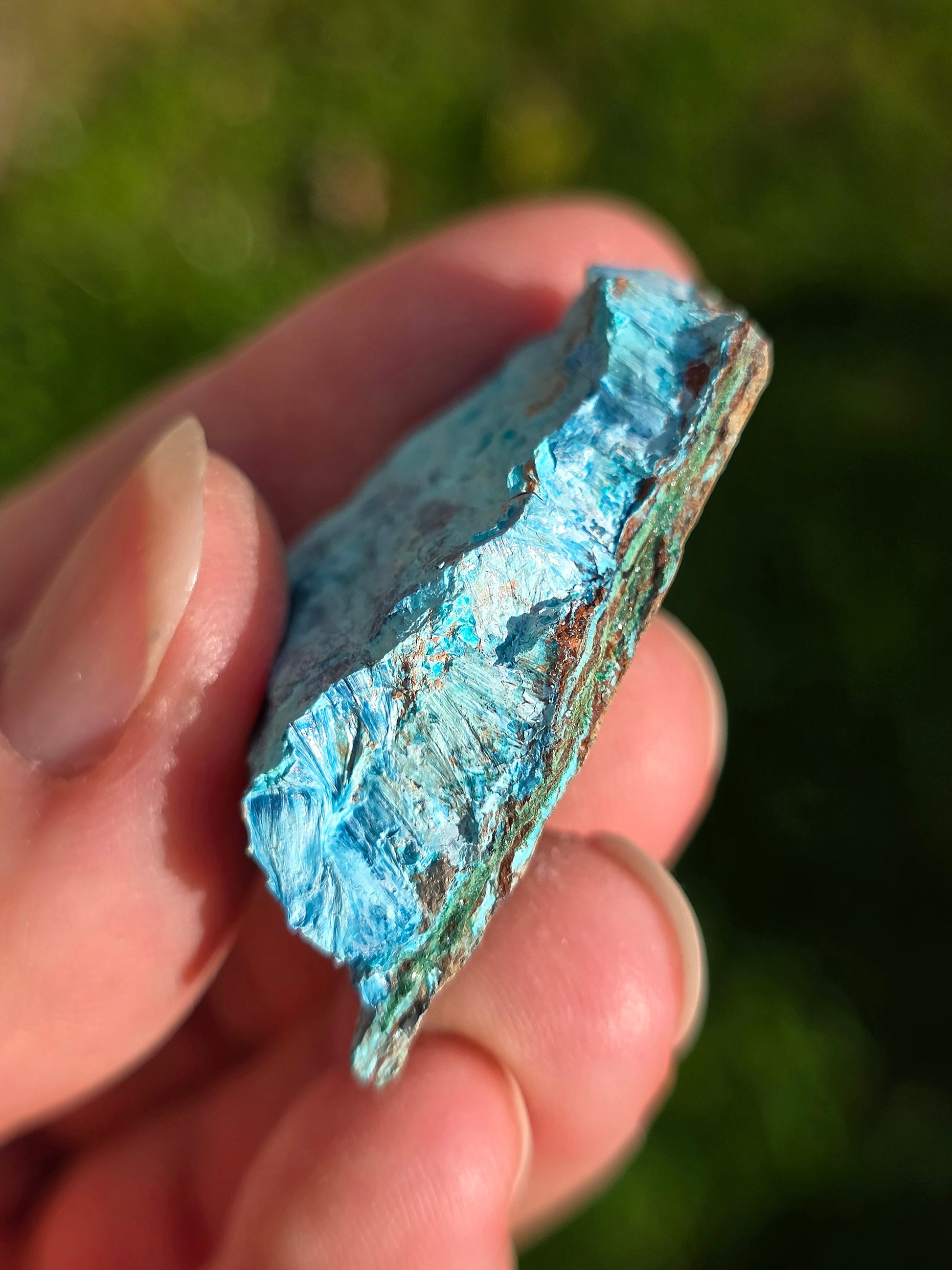 Superbe Shattuckite fibreuse du Congo brute. La Shattuckite est une pierre rare.