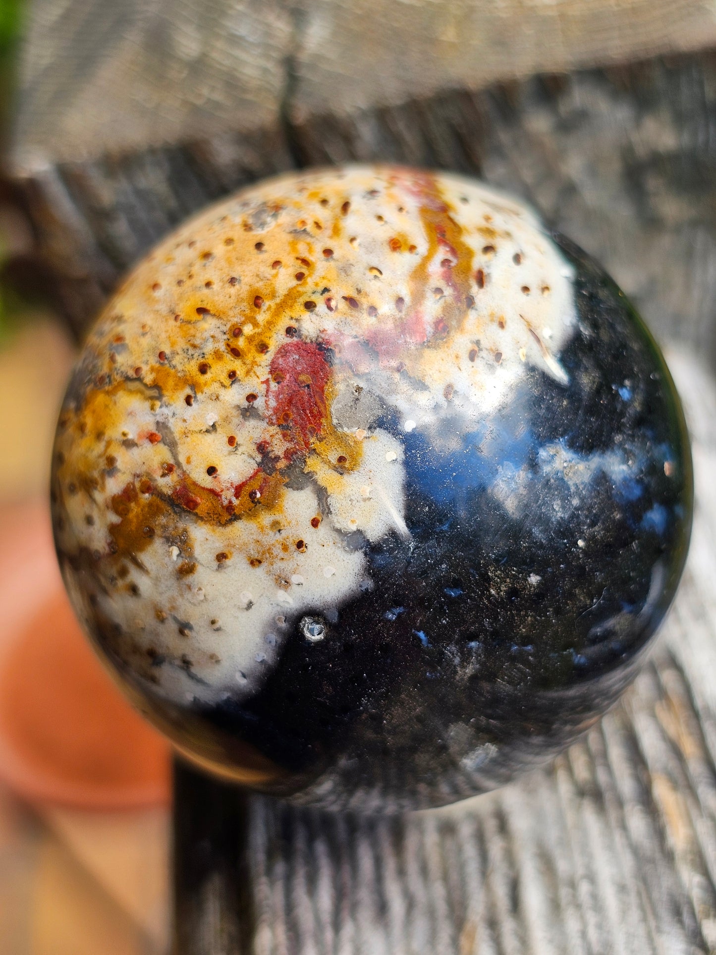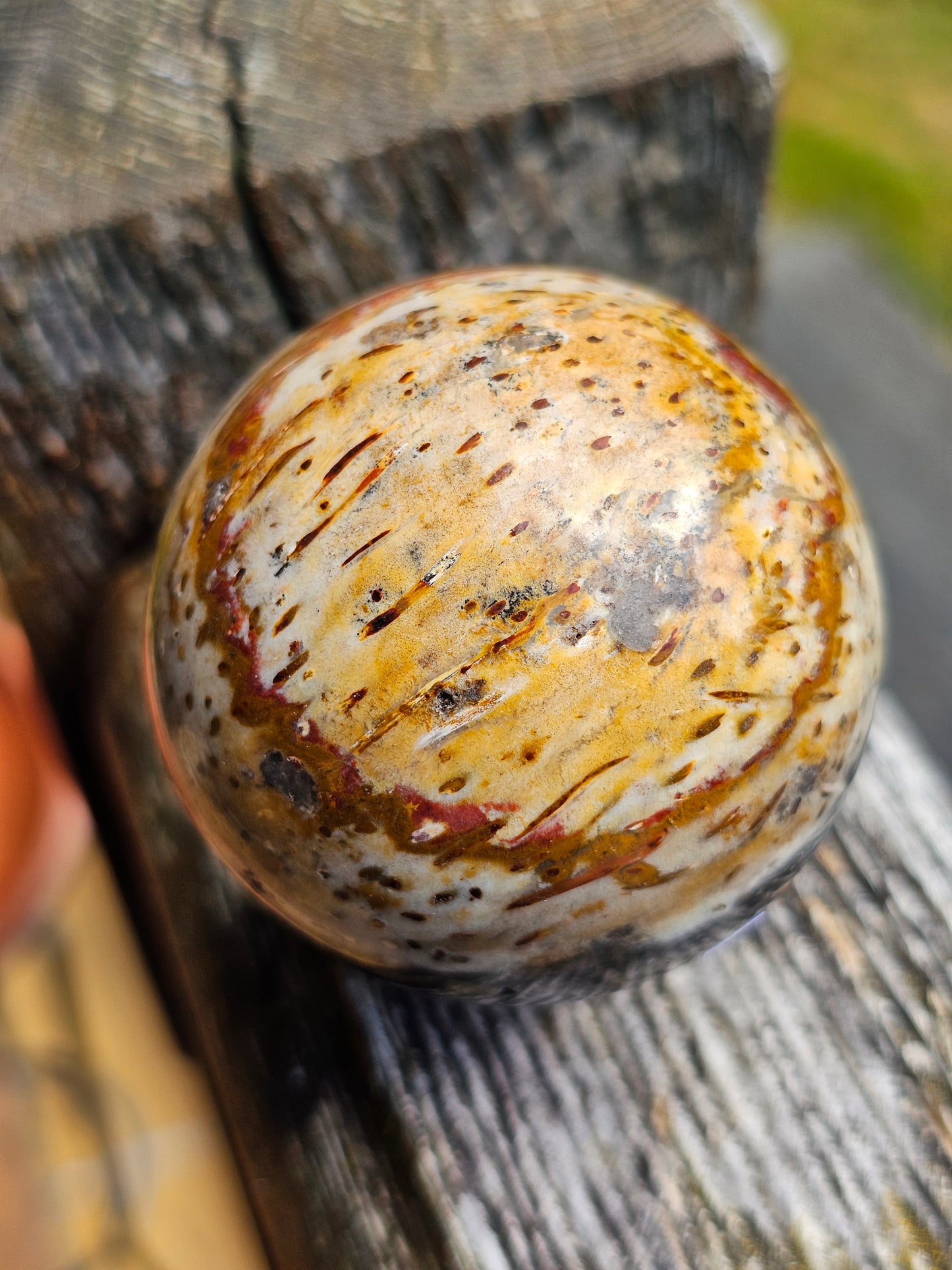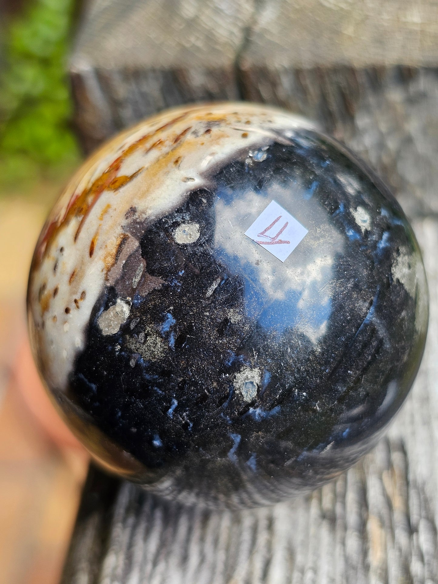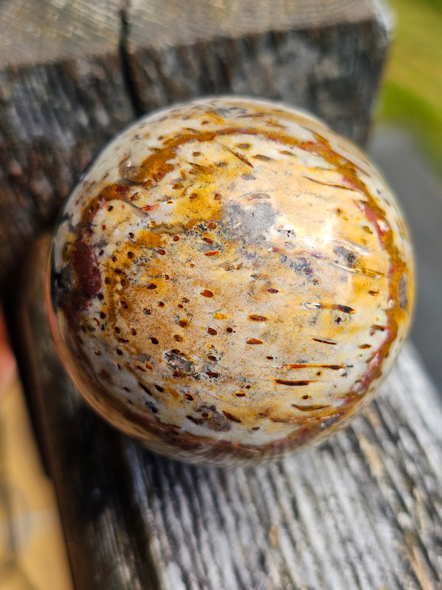Jolie sphère en bois fossilisé d'Indonésie. Le bois fossile est également appelée bois pétrifié.