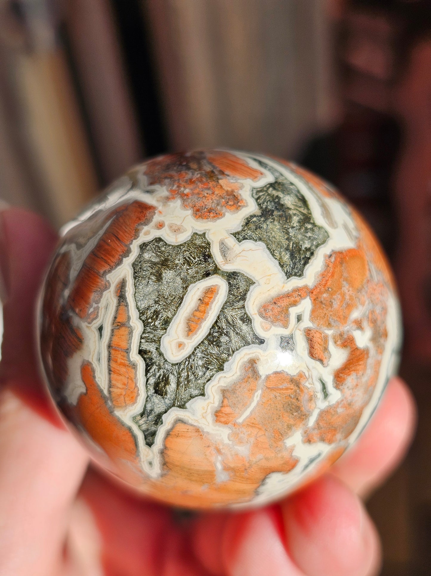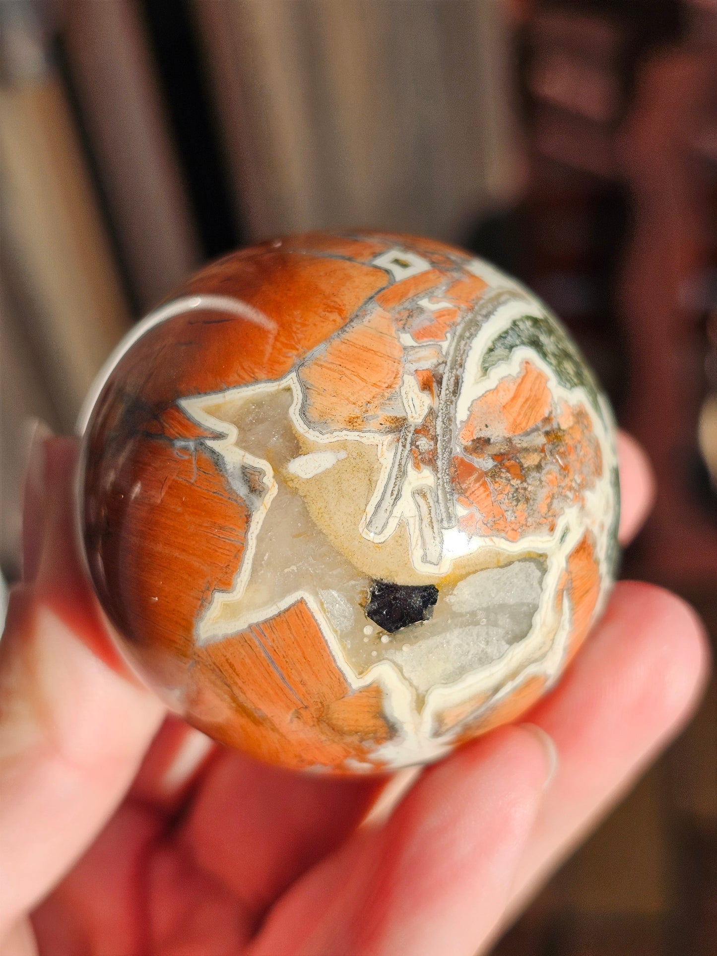 Magnifique sphère de Jaspe Brescia, également appelé Jaspe bréchique en provenance de Madagascar.