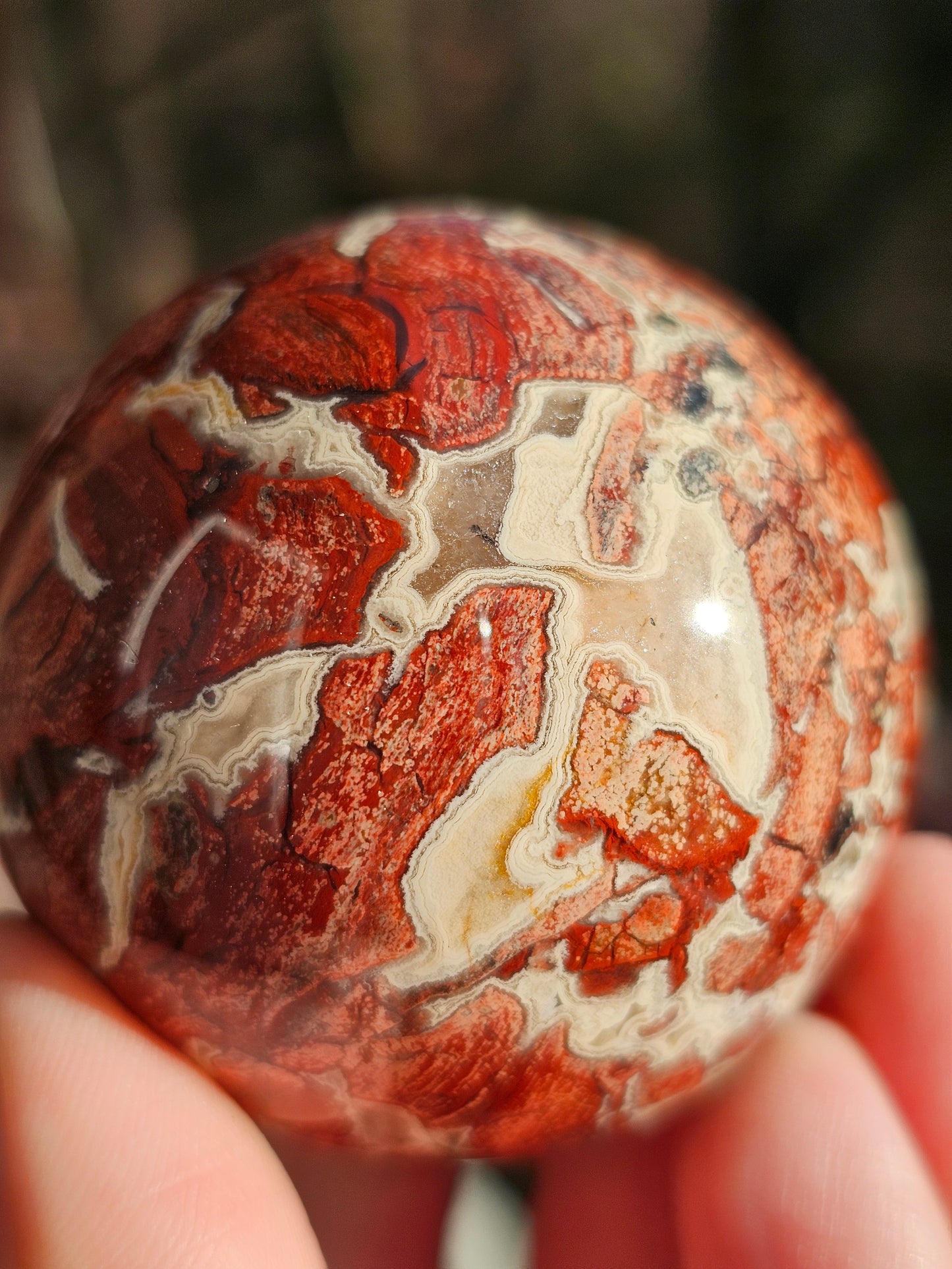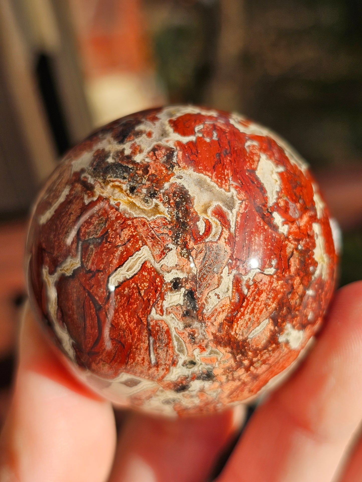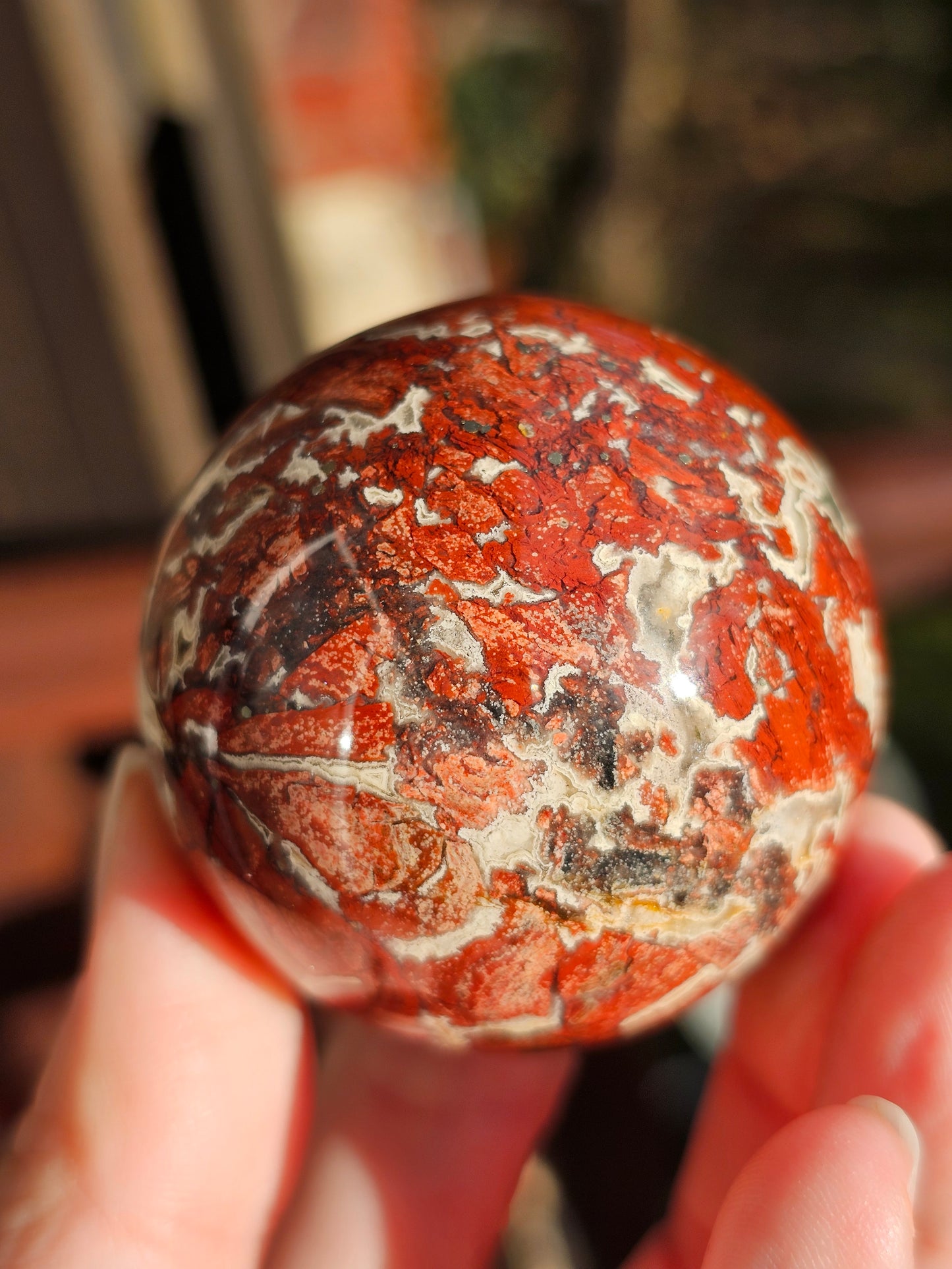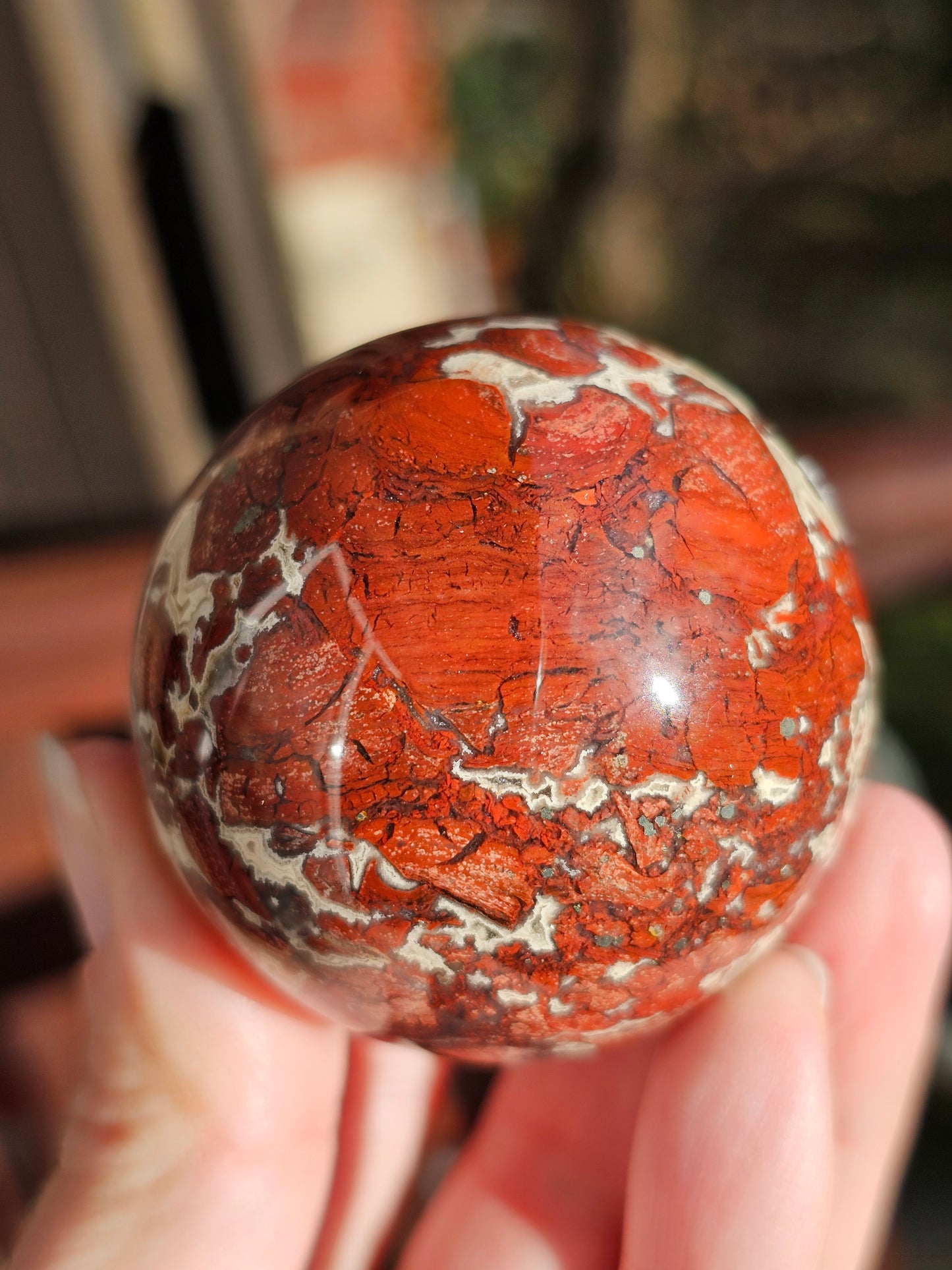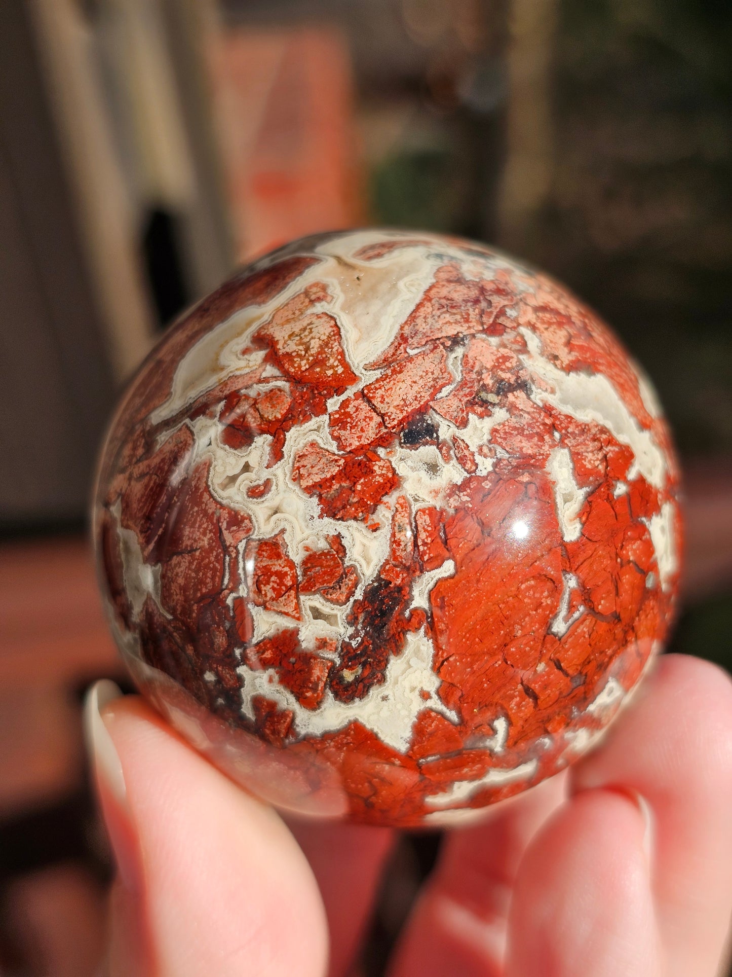 Magnifique sphère de Jaspe Brescia, également appelé Jaspe bréchique en provenance de Madagascar.