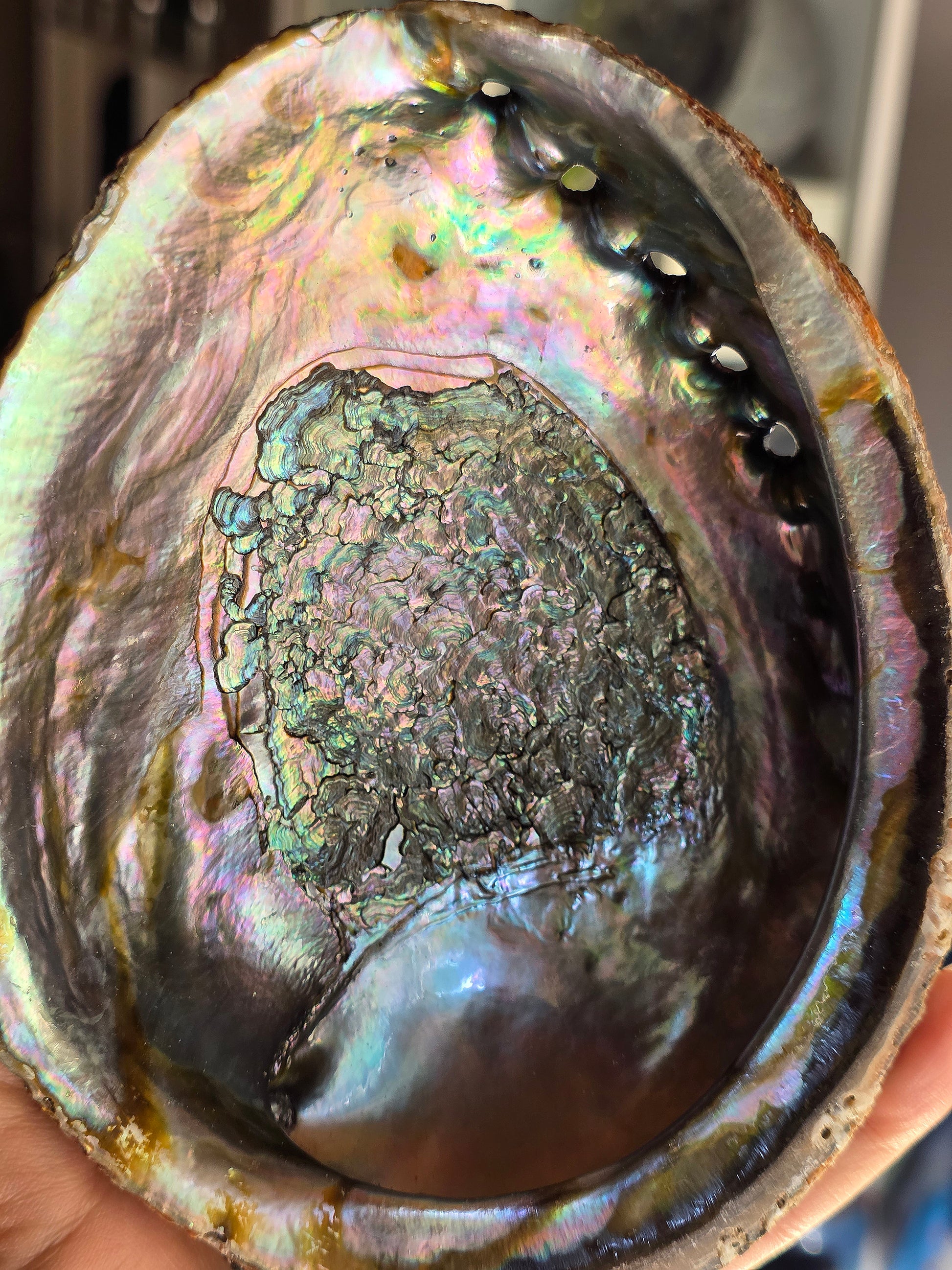 Magnifique Coquille d'Ormeau (également appelé Abalone, haliotis, oreille de mer, ou encore oreille de Vénus) du Mexique. (vidéo disponible ici)