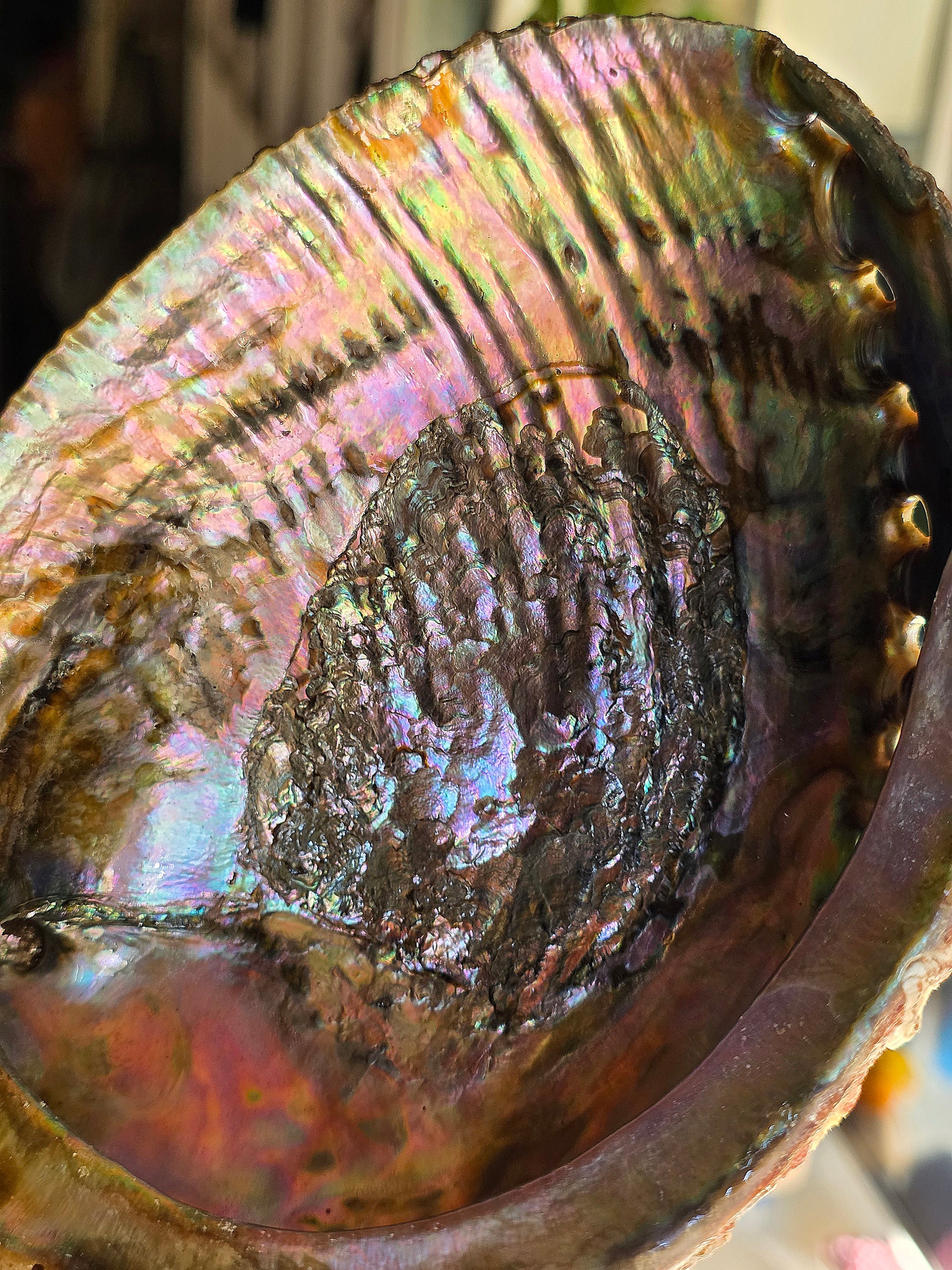 Magnifique Coquille d'Ormeau (également appelé Abalone, haliotis, oreille de mer, ou encore oreille de Vénus) du Mexique. (vidéo disponible ici)