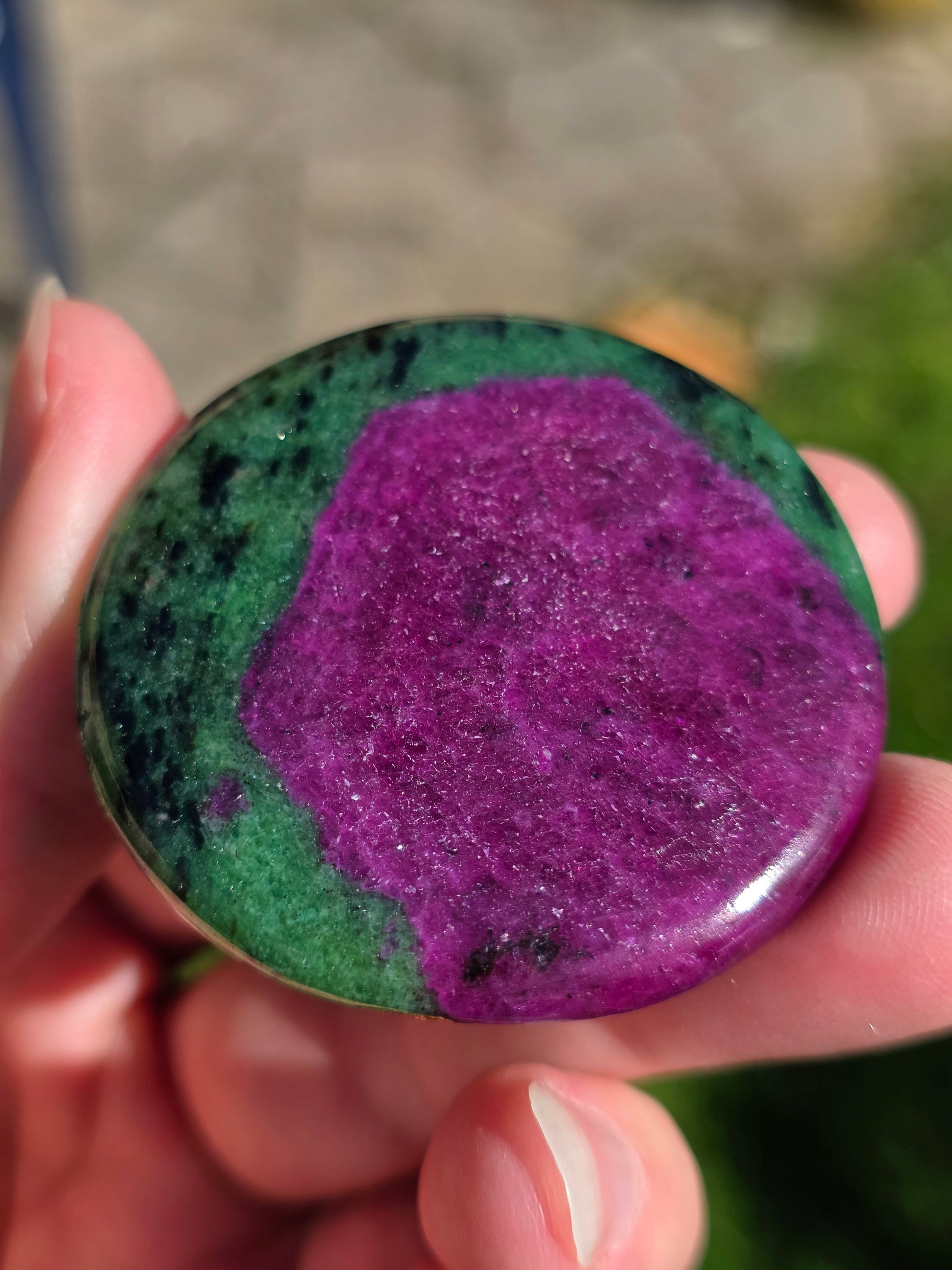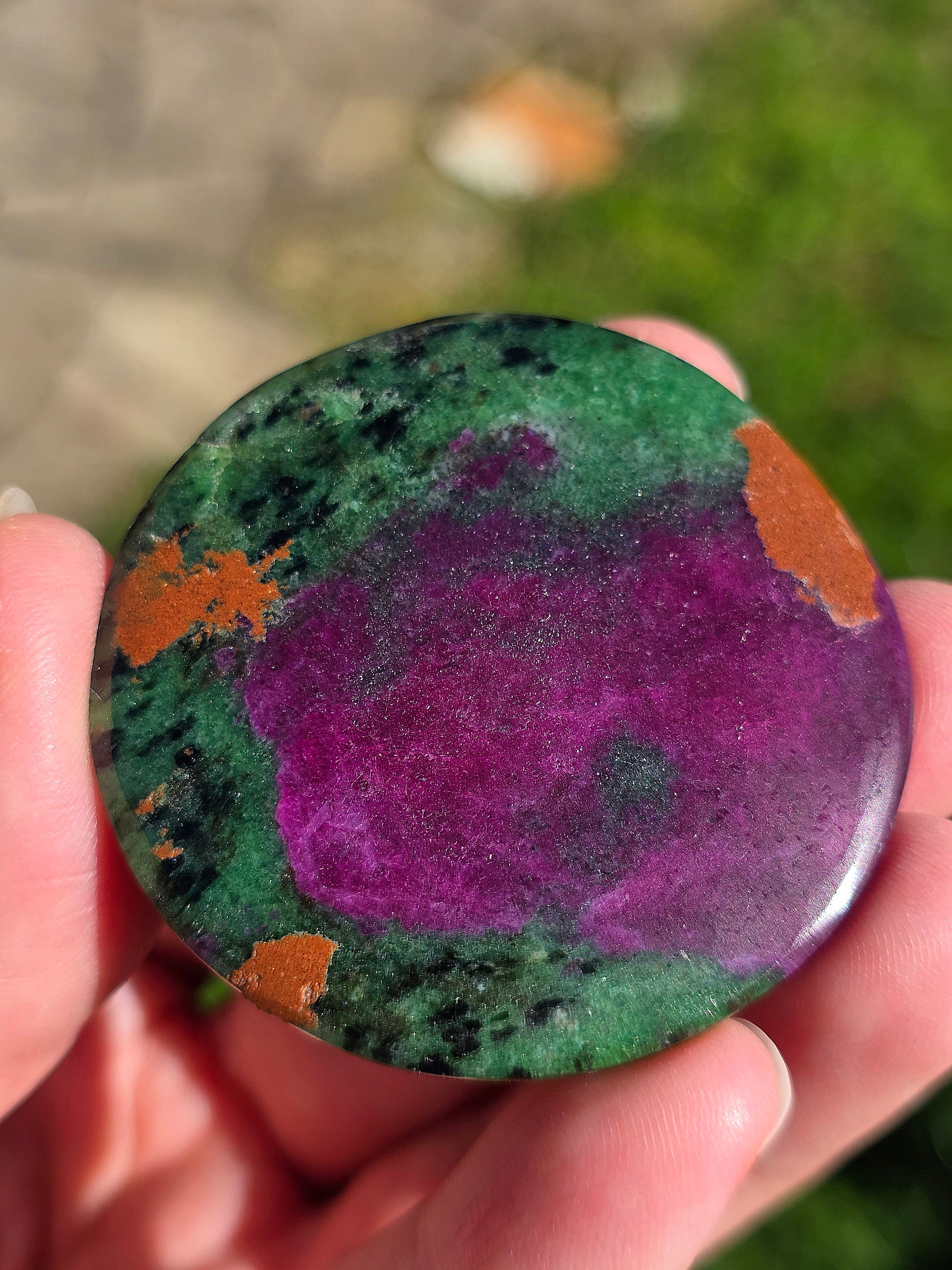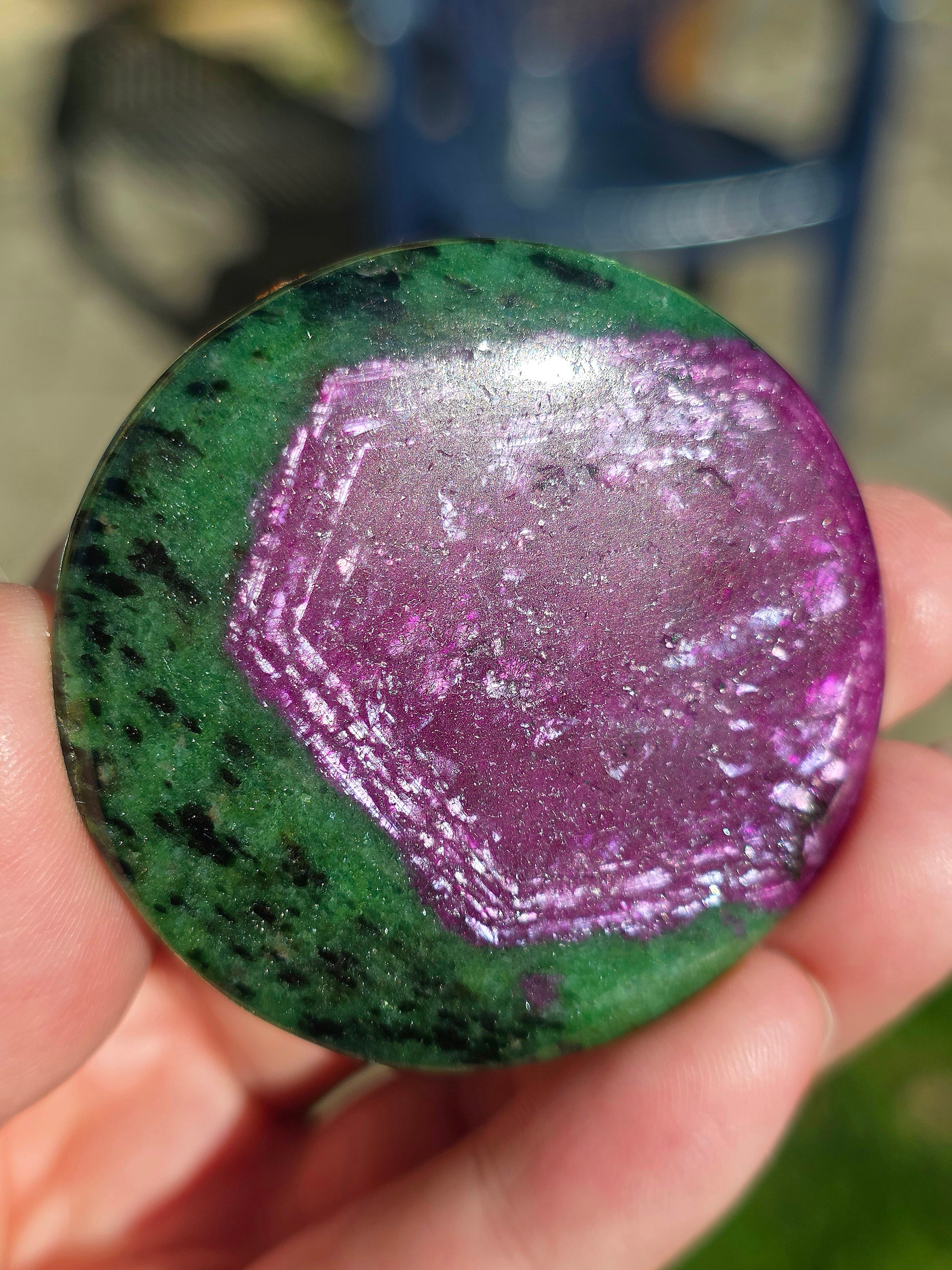 Incroyable cabochon de Zoïsite à Rubis en provenance de Tanzanie et réactif à la lumière ultra-violette. La formation est dingue ! Il est livré dans sa boîte vitrine. Une pièce d'exception pour votre collection minéralogique !