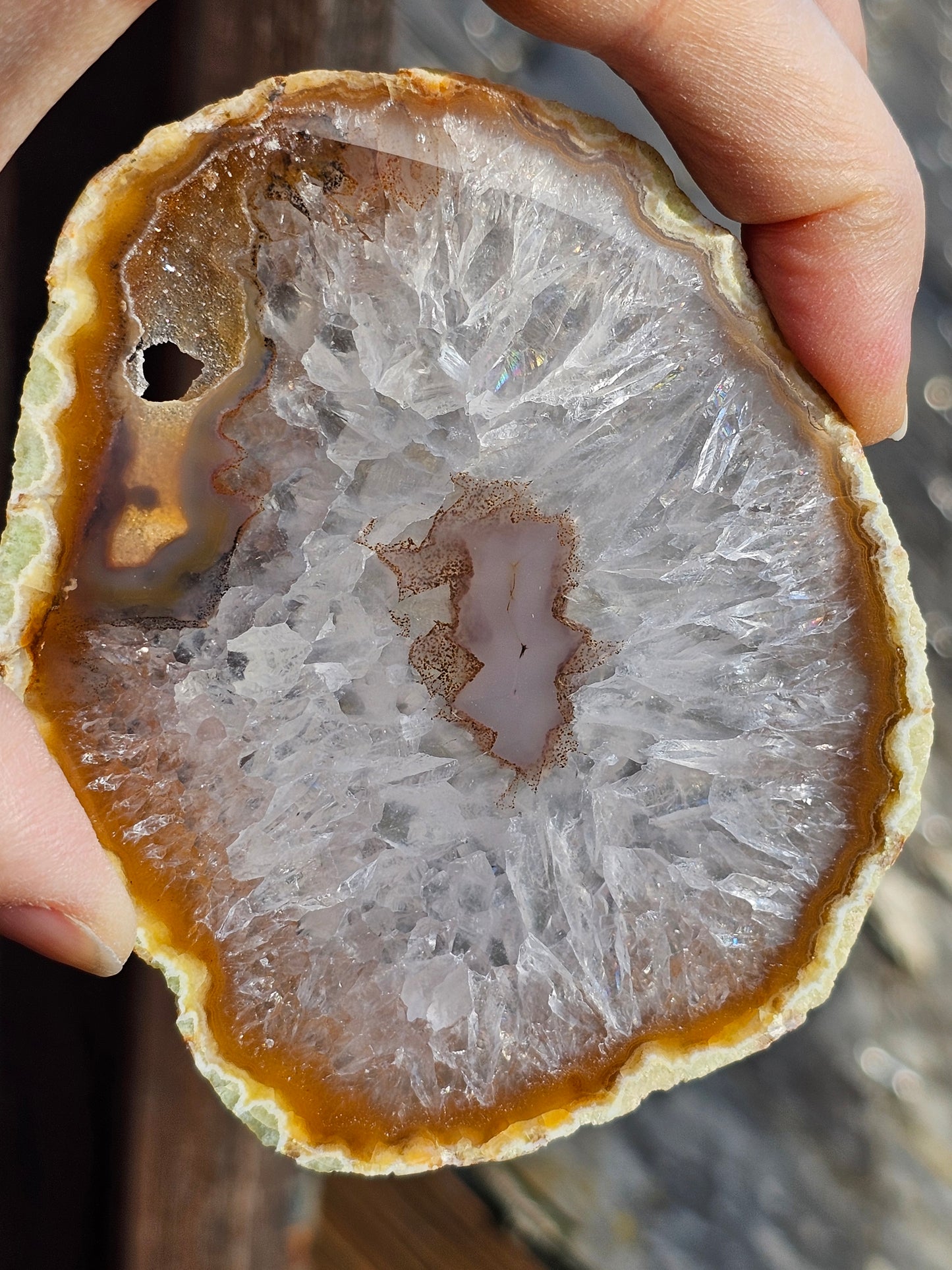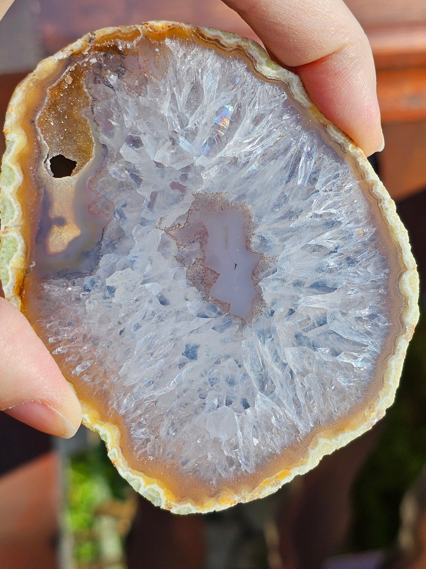 Magnifique tranche d'Agate du Brésil. Vidéo disponible en cliquant ici.