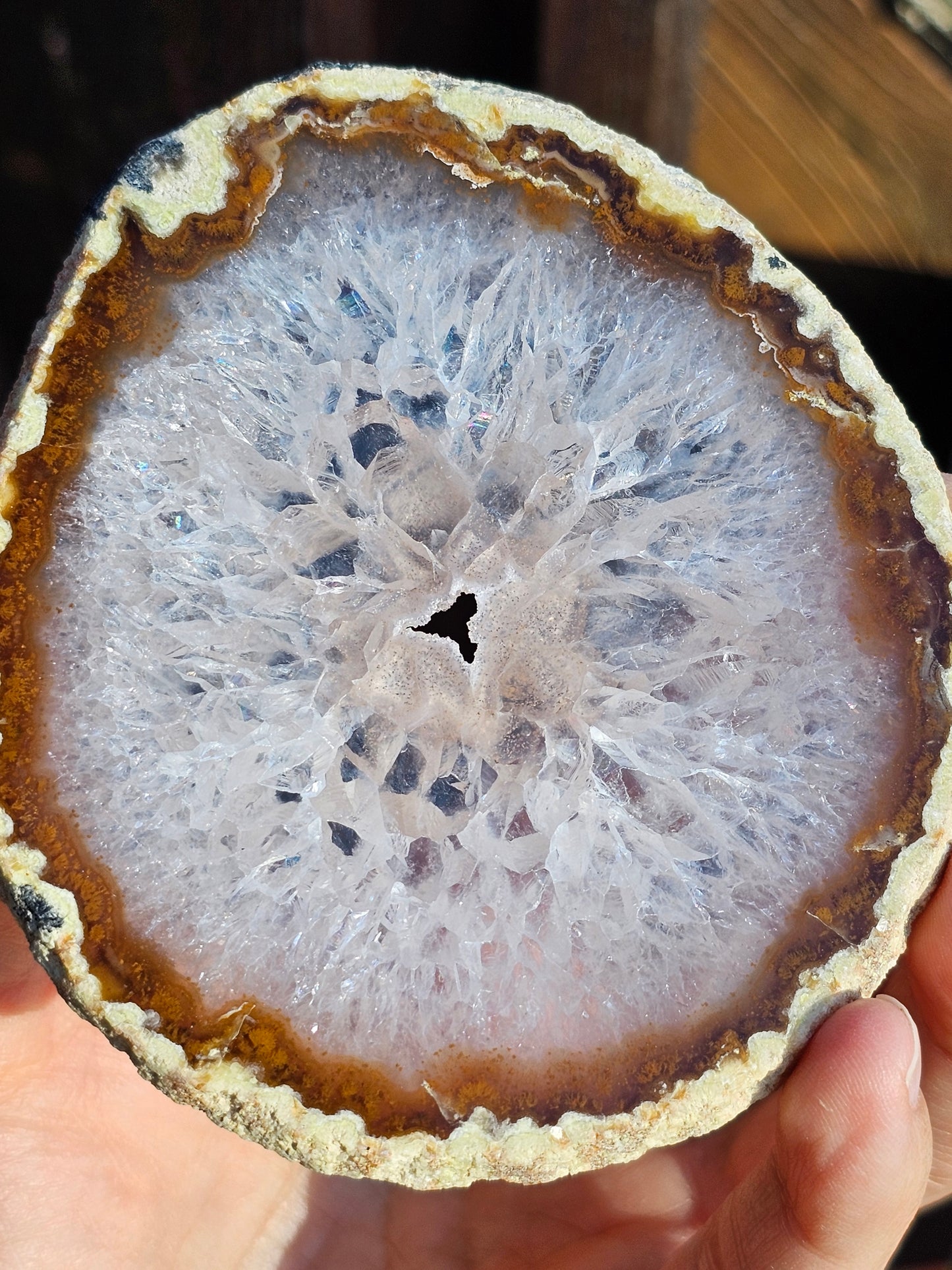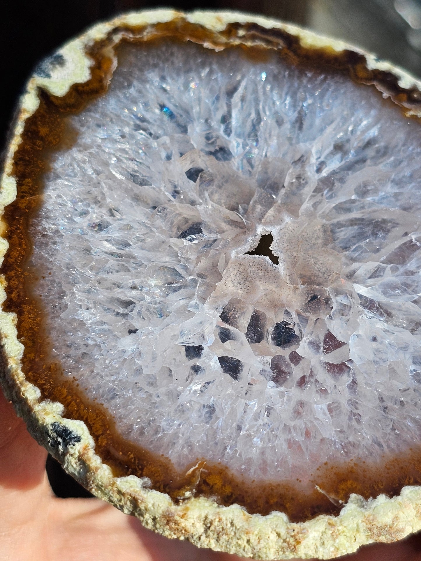 Magnifique tranche d'Agate du Brésil. Vidéo disponible en cliquant ici.